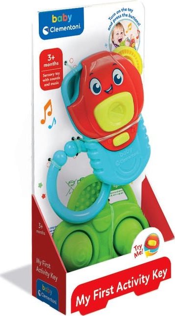 Tieto kľúče odomykajú všetky dvere. Dajú sa hrýzť a ešte vydávajú zaujímavé zvuky. S týmto kľúčom sa dostanete skutočne kamkoľvek. Interaktívny elektronický kľúčik a hryzátko. Kľúčik stimuluje sluchové vnímanie dieťaťa pomocou hudby a zvukov, podporuje hru na napodobňovanie. Mäkké hryzátko pomáha rozvíjať jemnú motoriku a zmyslové vnímanie. Objavte všetky hračky z radu Baby Clementoni, ktoré podporujú napodobňovanie dospelých. Elektronická interaktívna hračka navrhnutá tak, aby podporovala vývoj dieťaťa v prvých rokoch života.