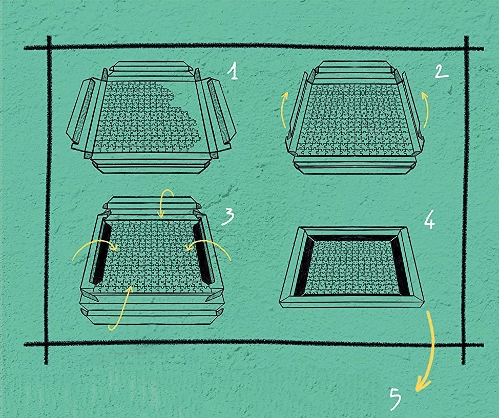 Puzzle zo špeciálnej edície Frame Me Up, ktoré môžete hneď po zložení pohodlne zarámovať! Nie je potrebné dokupovať rámček na puzzle, pretože je súčasťou balenia. Stačí len pár pohybov a štýlový rámček, ktorý sa stane designovým doplnkom každej miestnosti, je na svete. Preložte lepenkový rám v niekoľkých jednoduchých krokoch a zafixujte puzzle bez lepidla viď. obrázky. Skladanie puzzle pomáha deťom rozvíjať manuálnu zručnosť a schopnosť pozorovania. Kvalita materiálov a exkluzívna technika tlače zaručujú trvalo krásne, živé a žiarivé farby. Odporúčané pre deti od 6 rokov. Rozmer zloženého puzzle cca 27 x 27 cmVlastnosti