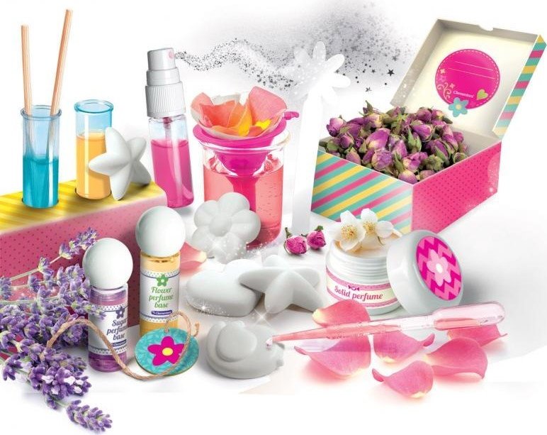 Fantastická sada pre malé slečny, ktoré môžu experimentovať a vytvoriť si vlastné parfumované výrobky. Detské laboratórium - výroba parfémov obsahuje prísady a receptúry na vytvorenie množstva úžasných parfémových výrobkov. Parfémy, mydlá, krémy, aromatické kúpeľové soli a mnoho ďalšieho. Ilustrovaný manuál povedie vaše dieťa krok za krokom, takže sa môže hrať úplne bezpečne. Súprava pomáha rozvíjať manuálnu zručnosť a kreativitu. Vhodné pre deti od 8 rokovVlastnosti
