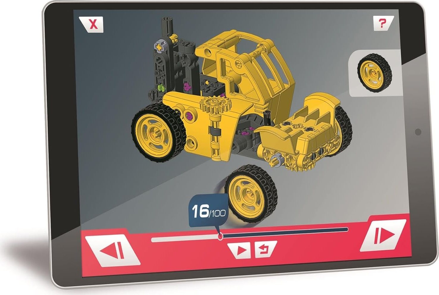 Stavebnice na zábavné zostavenie teleskopického vysokozdvižného vozíka. Obsahuje ozubené kolesá a špeciálne súčiastky na zostavenie funkčného riadiaceho systému a napodobnenie pohybov zdvíhacieho ramena. Stavba tohto modelu rozvíja manuálnu zručnosť a inteligenciu. Ilustrovaný návod a 3D inštrukcie poskytujú jednoduchý a užívateľsky prívetivý sprievodca pri stavbe modelu.