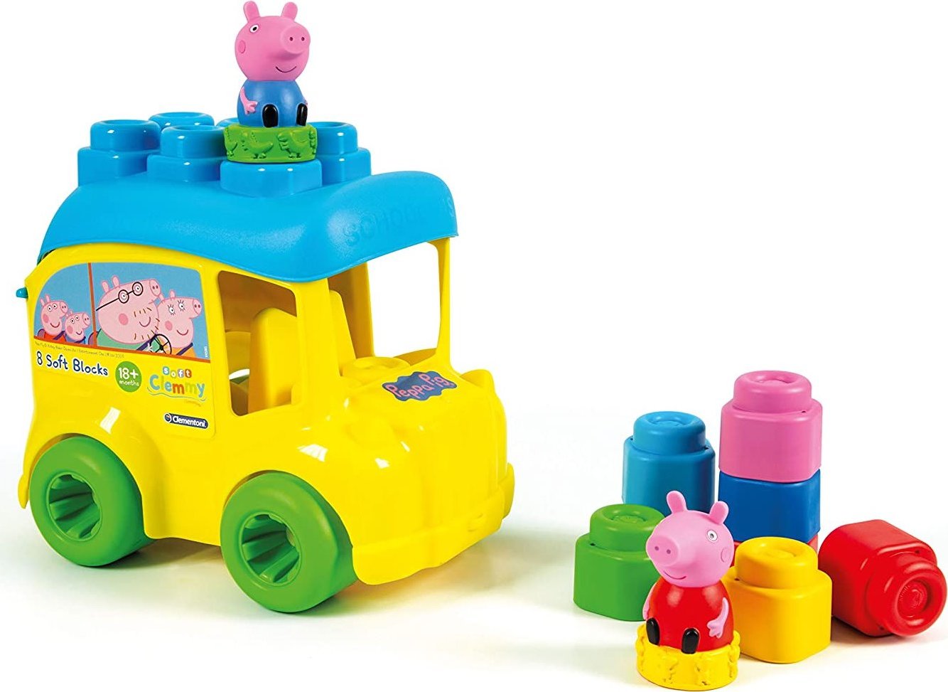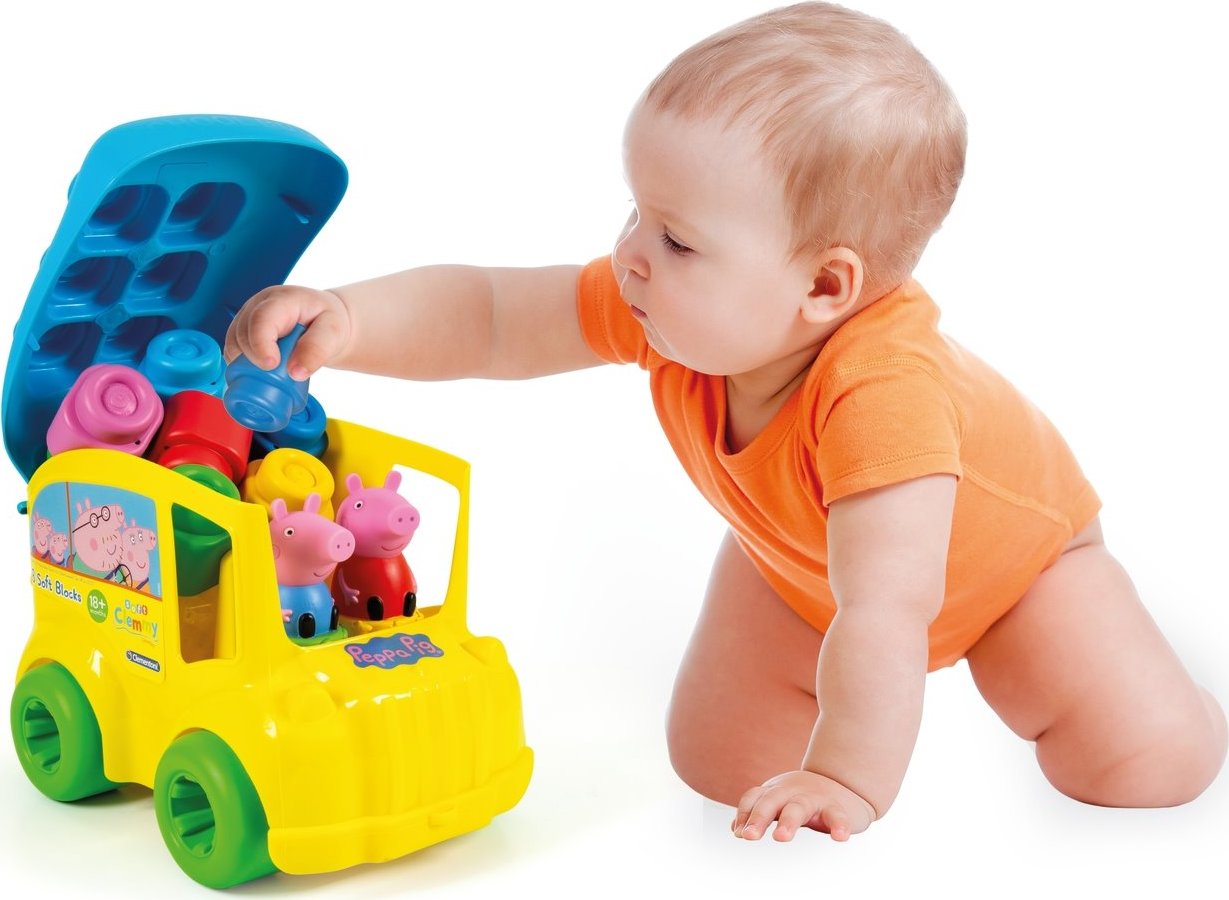 CLEMENTONI SOFT CLEMMY Školský autobus Prasiatko Peppa s 8 kockami
