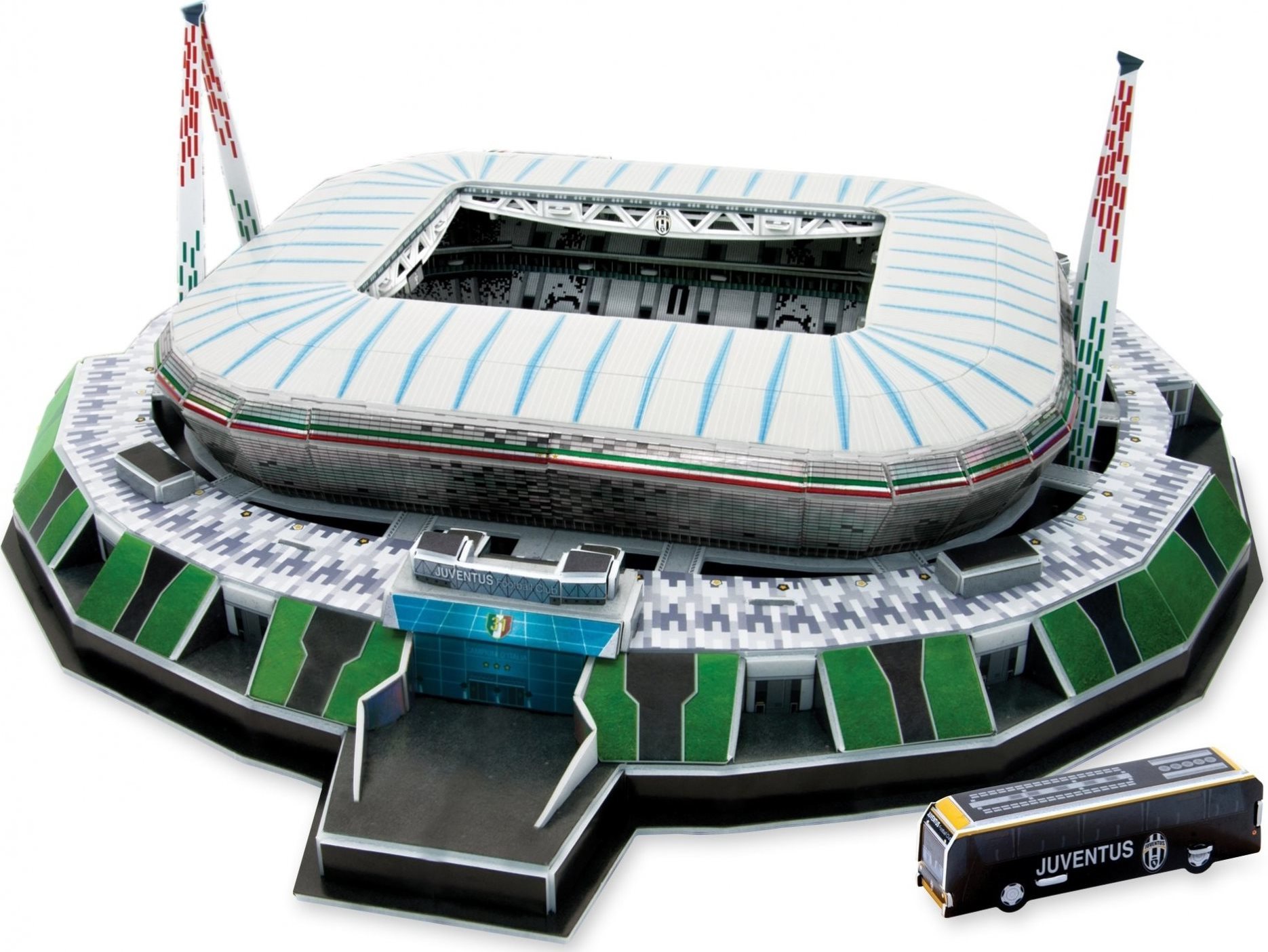 3D puzzle Futbalový štadión Allianz - domáce ihrisko klubu FC Juventus. Na skladanie nepotrebujete nožnice ani lepidlo. Ideálny darček pre všetkých futbalových fanúšikov. Rozmer zloženého puzzle cca 40 x 39,3 x 14,6 cm, obtiažnosť: 5,7