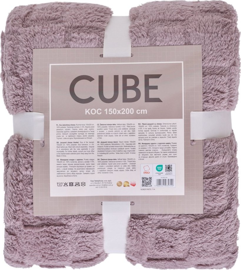 Deka CUBE je mäkká a má nadýchanú štruktúru. Vďaka polyesterovému mikrovláknu, z ktorého je deka vyrobená, je veľmi ľahká a príjemná na dotyk. Deka zaujme svojim vytlačovaným kockovaným vzorom, ktorý ju robí veľmi originálnou. Okrem praktických hrejivých vlastností hrá skvelú dekoratívnu rolu, kedy ozdobí každý interiér. Deku je možné tiež použiť ako prehoz na posteľ, kreslo alebo pohovku. Vďaka krásnym farbám sú deky CUBE taktiež vhodné ako darček. Deku je možné prať v práčke.