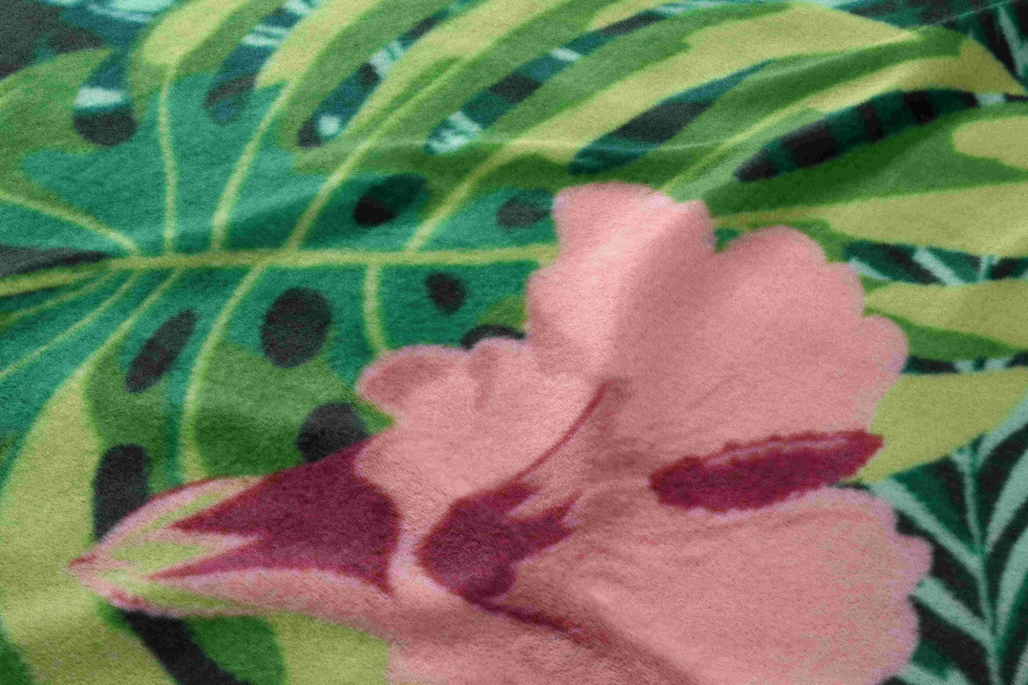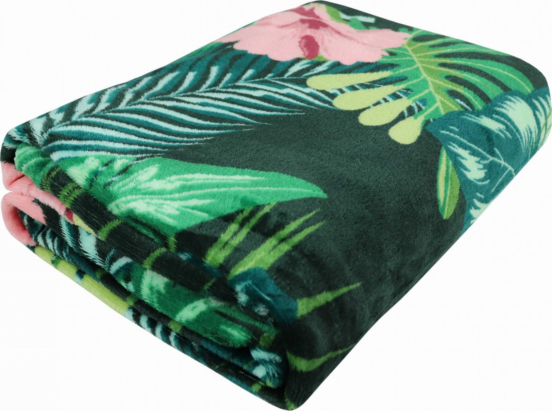 Módna a na dotyk príjemná deka s exotickým vzorom palmových listov v krásnych odtieňoch zelenej je vyrobená z kvalitného mikroflanelu, ktorý sa vyznačuje vyššou hustotou vlákien, vďaka čomu je deka veľmi jemná na dotyk. Vysoká kvalita použitých materiálov, precíznosť a solídne spracovanie zaručujú dlhodobé používanie. Deka nielen príjemne zahreje, ale je možné ju tiež použiť ako štýlový prehoz cez posteľ, pohovku alebo kreslo.