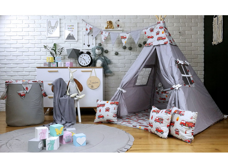 Ako doplnok ponúkame dvojfarebnú girlandu so siedmimi vlajkami, ktorá celý komplet Teepee (típí) stanu privedie k dokonalosti a oživí Váš interiér. Girlanda je vyrobená z kvalitnej bavlny, ktorá je veľmi príjemná na dotyk. Vlajky neobsahujú výplň.