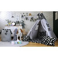 Ako doplnok ponúkame dvojfarebnú girlandu so siedmimi vlajkami, ktorá celý komplet Teepee (típí) stanu privedie k dokonalosti a oživí Váš interiér. Girlanda je vyrobená z kvalitnej bavlny, ktorá je veľmi príjemná na dotyk. Vlajky neobsahujú výplň.