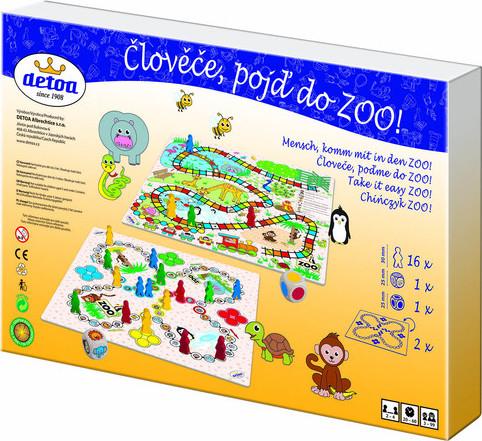 Dosková hra na spôsob Človeče, nehnevaj sa! sa skladá z drevených figúrok, hracích kociek a obojstranného herného plánu z tvrdého kartónu.