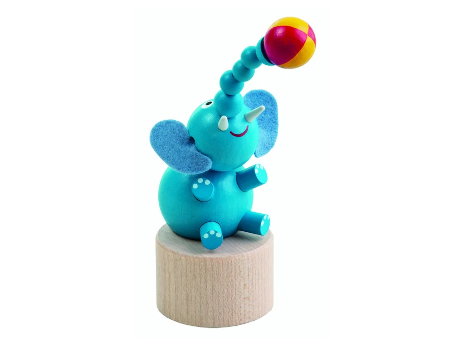 Veselá stláčacia figúrka v podobe slona, pri stlačení tlačidla skrytého v podstavci sa smiešne pohybuje.