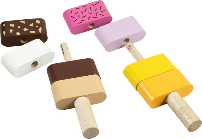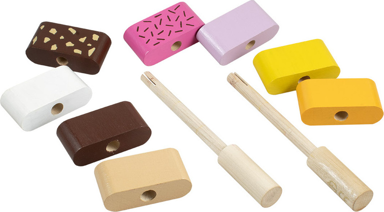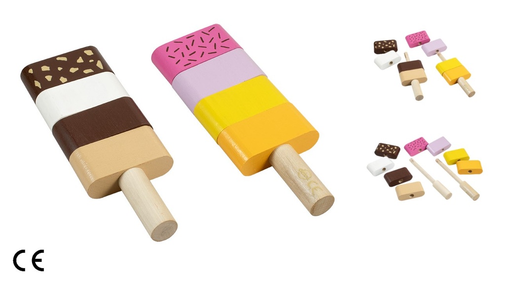 Drevená motorická hračka, ktorá upúta svojou farebnosťou. Vhodné pre rozvoj predstavivosti a logického myslenia. U týchto skladacích nanukov si dieťatko môže nakombinovať farby, ako sa mu zapáči. Nasadzovaním dielikov na tyč si naviac precvičuje jemnú motoriku. Hračka obsahuje 2 tyčky na navliekanie, 6 dielikov s otvorom a 2 koncové dieliky. Zodpovedá aktuálnym európskym bezpečnostným normám.