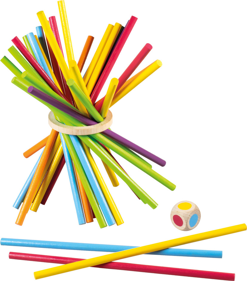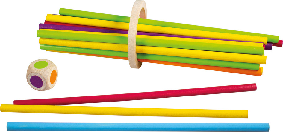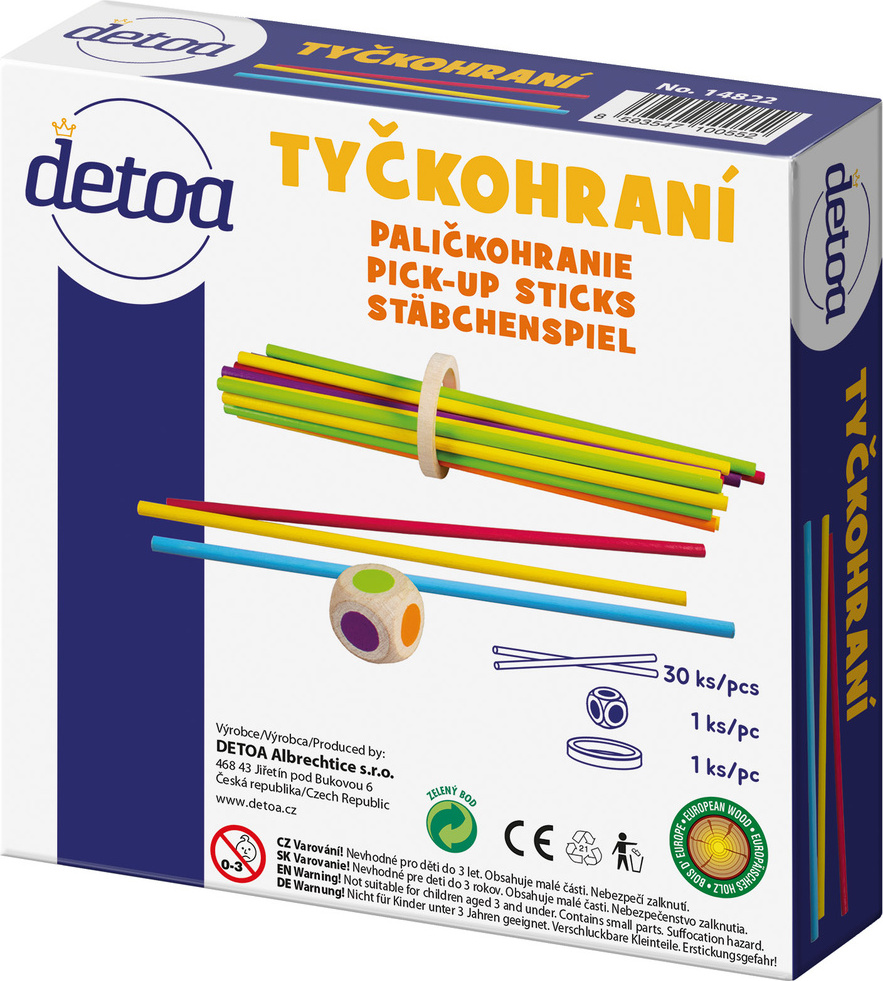 Máte radi hru mikádo, ale už by ste si ju chceli zahrať trochu inak? Potom je Tyčkohranie určené presne pre Vás! Hra pre dvoch a viacerých hráčov podporuje jemnú motoriku, logiku a trpezlivosť. Je vhodná aj na precvičenie farieb. A aký že je princíp tejto hry? Hoďte kockou a vytiahnite tyčku rovnakej farby tak, aby sa drevené koliesko nedotklo stola. Pokiaľ sa tak stane, hráč prehráva. Tyčkohranie obsahuje 30 ks farebných tyčiniek, 1 hraciu kocku a 1 drevený krúžok.