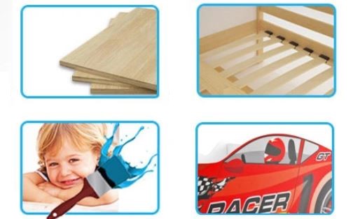 Detská autopostel je splnený sen pre malých pretekárov! Obľúbená detská posteľ v tvare auta je vyrobená z kvalitných MDF dosiek a má pevný lamelový rošt pod matrac. Autopostel je vďaka použitým kvalitným materiálom veľmi odolná a pevná. Na autopostel boli použité ekologické farby. Hrany postele sú zaoblené, vyvýšené boky zabraňujú pádu dieťaťa. Celá autopostel je vyrobená tak, aby sa zabezpečilo najmä bezpečie dieťaťa.