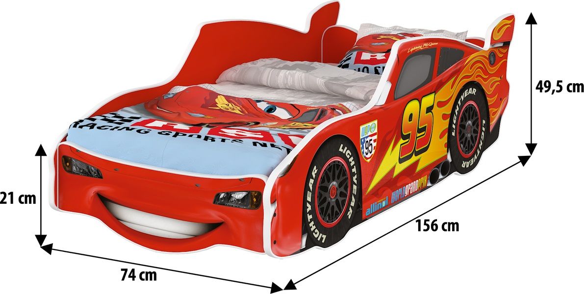 Novinka v našej ponuke - detské autopostele Blesk McQueen. Splnený sen pre malých fanúšikov filmu Autá! Kvalitné detské postieľky v tvare pretekárskeho auta sú vyrobené z kvalitných lamino dosiek s hrúbkou 16 mm s krásnou farebnou potlačou. Tlač má pekné sýte farby, ktoré sú zabezpečené špeciálnym laminátom s ochranou proti oderu. Rám postele je vyrobený z masívu. Autopostele sú vďaka použitým kvalitným materiálom veľmi odolné a pevné, hrany sú zaoblené, takže sa nemusíte báť o bezpečnosť Vášho dieťaťa.