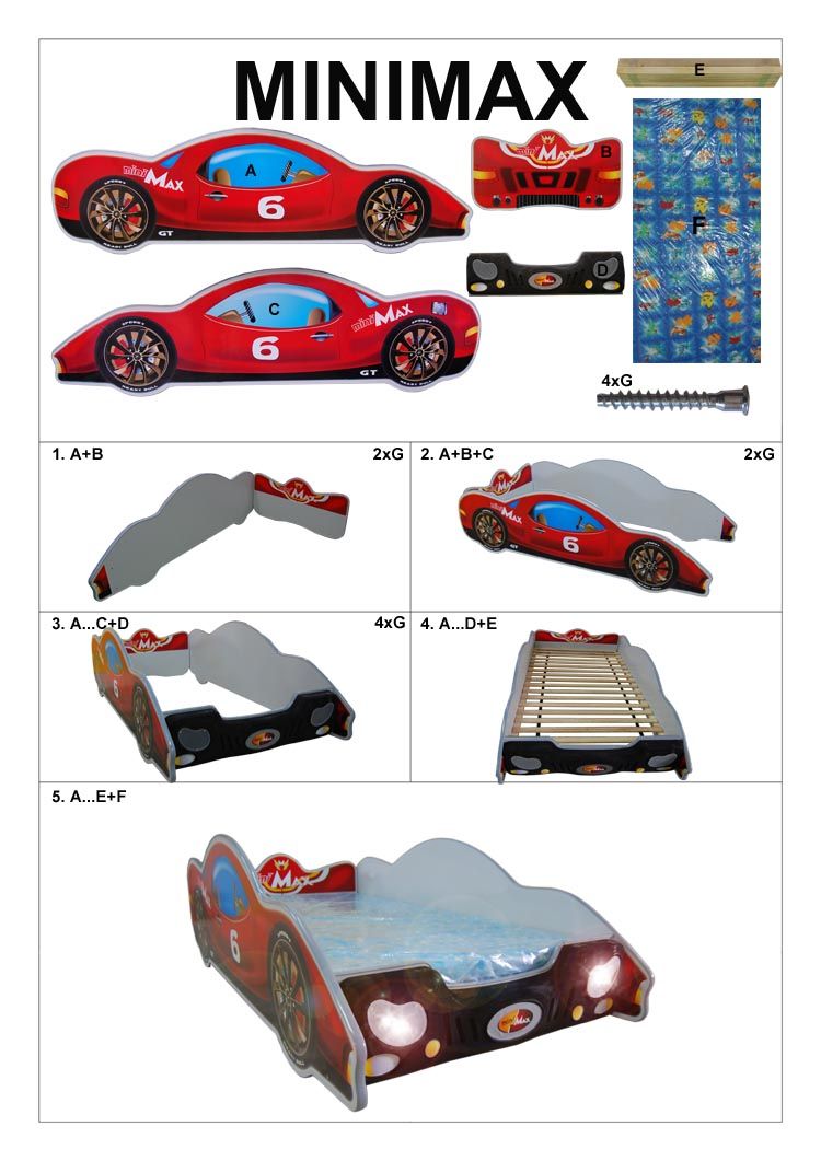Detská autopostel MINIMAX 180x90 cm + ZADARMO ROŠT aj MATRACE