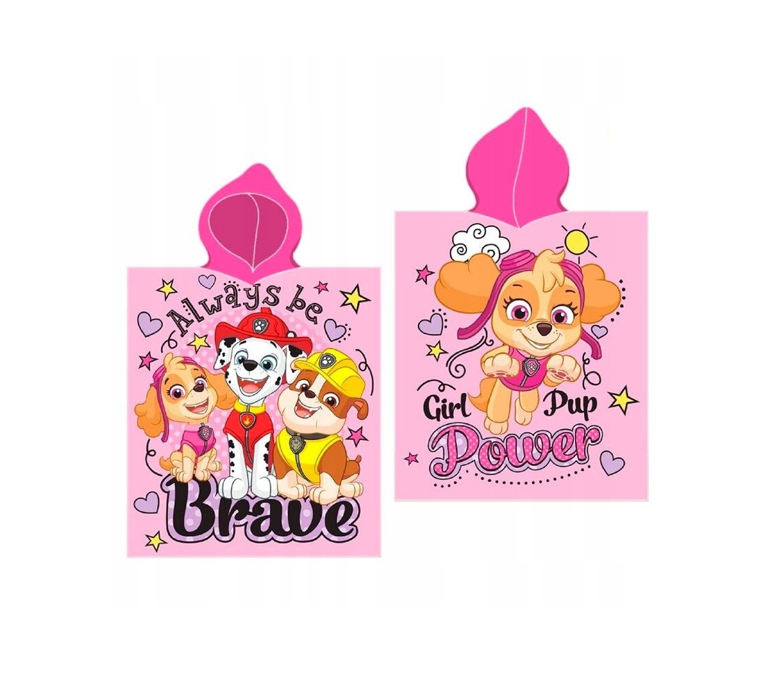 Detská bavlnená osuška s kapucňou TLAPKOVÁ PATROLA - ružová - 55x110 cm