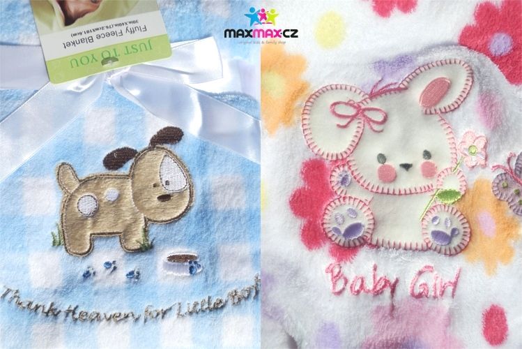 Detské deky z mikrovlákna sú veľmi príjemné na dotyk a majú krásne pestré farby. Naše detské deky sa skvele hodí do kočíkov aj do detských postieľok. Deky pre deti ponúkame v desiatkach originálnych vzorov a farieb. Všetky deky sú vyrobené len z tých najkvalitnejších materiálov, nepúšťajú farbu, aj po mnohých praniach vyzerajú stále ako nové. Na každej deke je vyšitý jedinečný motív - psík, mačička, žirafa, motýľ, slon, králiček, medvedík ... Všetky detské deky sú zabalené v darčekovom balení, previazané stuhou, takže sa skvele hodí ako originálny darček.