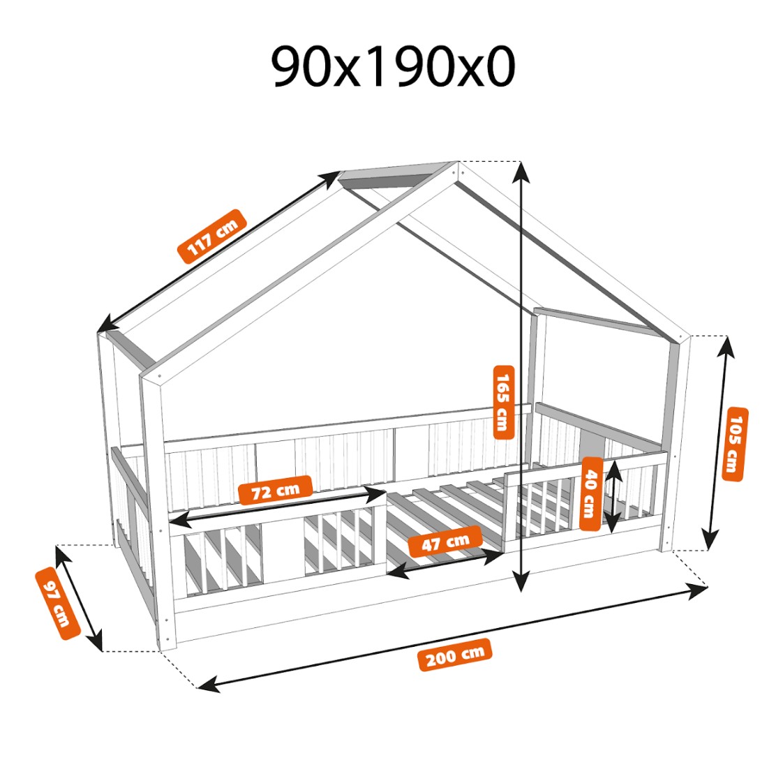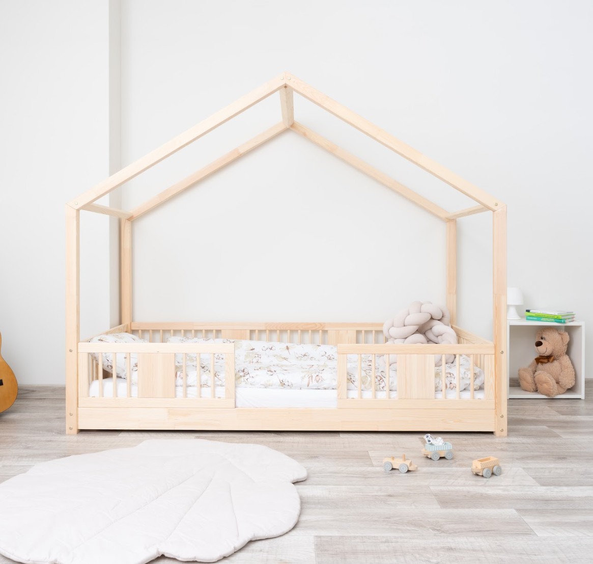 Detská domčeková Montessori posteľ z masívu borovice LUNA S - 190x90 cm