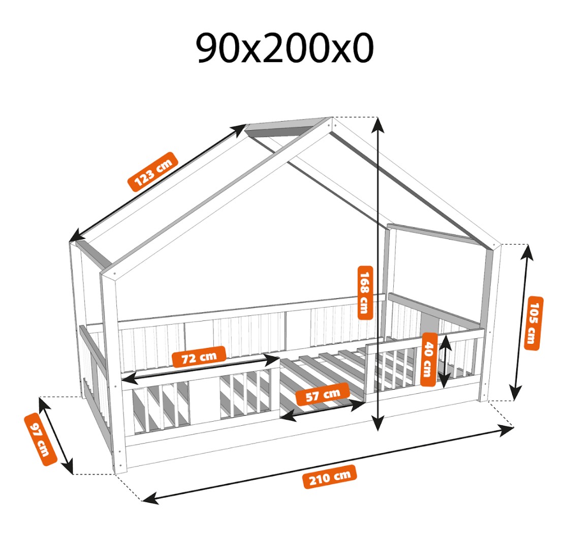 Detská domčeková Montessori posteľ z masívu borovice LUNA S - 200x90 cm