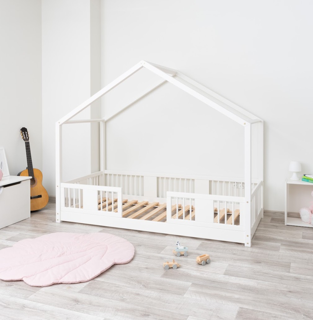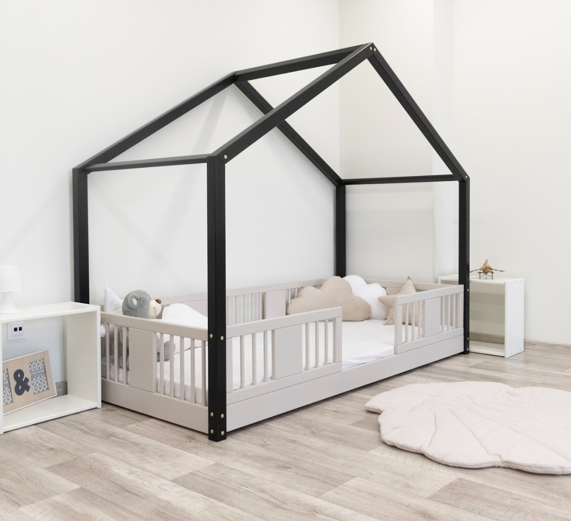 Montessori posteľ LUNA S je očarujúce jednolôžko v tvare domčeka, ktoré kombinuje funkčnosť, bezpečnosť a nadčasovú estetiku. Postavené priamo na podlahu vytvára bezpečný priestor, ideálny ako prvá detská postieľka. Vďaka nízkemu profilu môže vaše dieťa samostatne vliezť a vstávať z postele, čo podporuje jeho vývoj a nezávislosť od útleho veku. Princíp Montessori kladie dôraz na voľnosť dieťaťa, čo táto posteľ ponúka. Charakteristickým rysom modelu LUNA sú okrúhle, sústružené priečky, ktoré dodávajú posteli jemný, príjemný vzhľad a nenápadne ju odlišujú od ostatných modelov. Ich mäkký tvar vnáša do interiéru harmóniu a ľahkosť a zároveň poskytuje dodatočné bezpečie počas spánku. Posteľ LUNA S je vyrobená výhradne z prírodného borovicového dreva – odolného, prírodného a úplne bezpečného pre deti. Každý kus má zaoblené hrany na pohodlné používanie. Na povrchovú úpravu boli použité ekologické farby na vodnej báze, ktoré spĺňajú bezpečnostné normy. Posteľ ponúkame aj vo verzii bez povrchových úprav - nelakované drevo. Vďaka tomu sa dá ľahko prispôsobiť - jej vzhľad môžete upraviť morením, lakovaním alebo maľovaním podľa vlastného uváženia. Unikátny drevený baldachýn vytvára útulnú, rozprávkovú atmosféru. Stačí pridať svetlá alebo ľahkú látku a premeniť obyčajnú izbu na kúzelný priestor. Táto posteľ nie je len na spanie, ale aj na vytváranie spomienok.