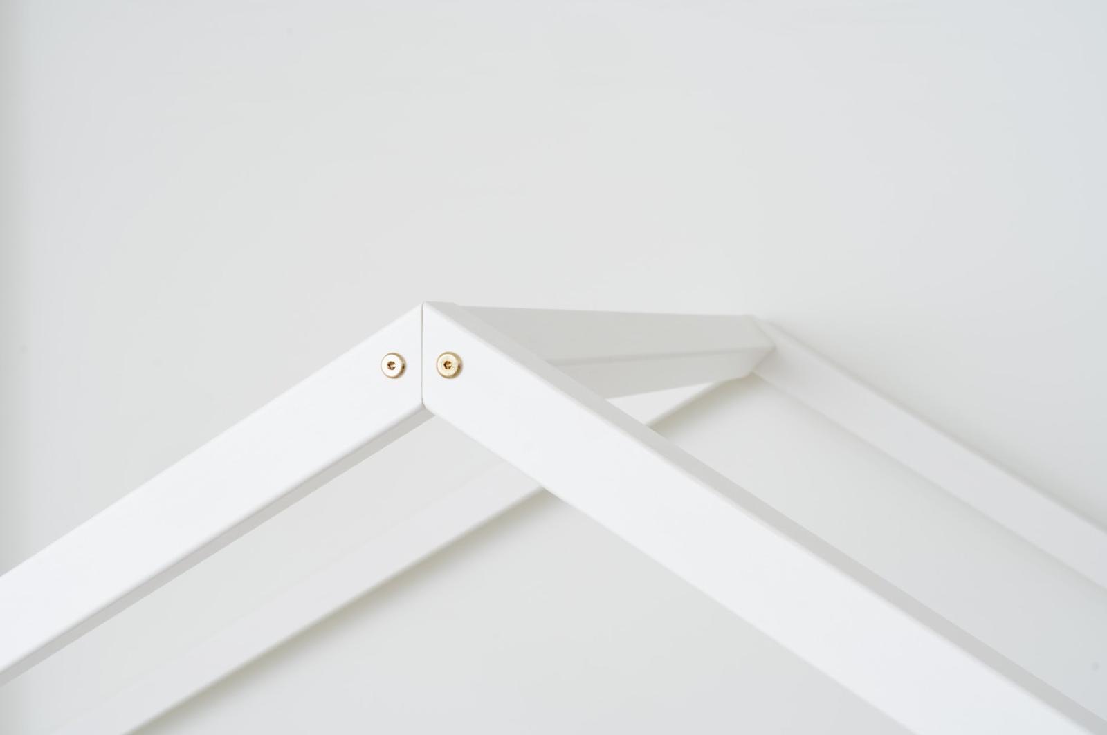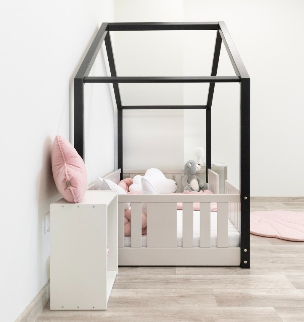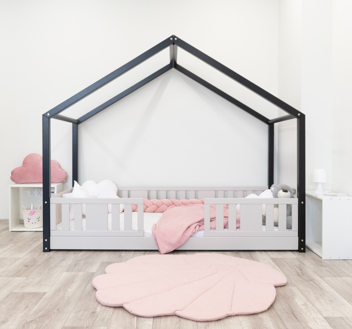 Montessori posteľ NIKO S je nízka detská posteľ v tvare domčeka, ktorá v sebe spája funkčnosť, bezpečnosť a očarujúce design. Rám, umiestnený priamo na podlahe, umožňuje vášmu dieťaťu samostatne vliezť do postele az nej vyliezať, čo podporuje nezávislosť a pocit bezpečia. Princíp Montessori kladie dôraz na voľnosť dieťaťa, čo táto posteľ ponúka. Charakteristický drevený baldachýn premení túto klasickú jednolôžko na útulný domček na spanie a hranie. NIKO S kombinuje funkčnosť s kúzlom detstva a ponúka bezpečné miesto na spánok a hranie v jednom. Posteľ je vyrobená výhradne z prírodného borovicového dreva o sile 2,2 cm, ceneného pre svoju odolnosť, stabilitu a hrejivý vzhľad. Drevo bolo starostlivo brúsené a všetky hrany sú jemne zaoblené, aby bola zaistená maximálna bezpečnosť pre najmladších užívateľov. Celá konštrukcia je povrchovo upravená ekologickými farbami na vodnej báze, ktoré spĺňajú európsku normu EN 71-3. Farby sú bez zápachu, netoxické a bezpečné aj pre alergikov. Posteľ ponúkame aj vo verzii bez povrchových úprav - nelakované drevo. Vďaka tomu sa dá ľahko prispôsobiť - jej vzhľad môžete upraviť morením, lakovaním alebo maľovaním podľa vlastného uváženia. Nie je to len posteľ na spanie – je to malý drevený domček, ktorý rozvíja detskú fantáziu a podporuje kreatívnu hru. Drevená strieška vo verzii SHORT vytvára jedinečne útulnú atmosféru, ktorú je možné ľahko vylepšiť svetlami, látkami alebo girlandami.