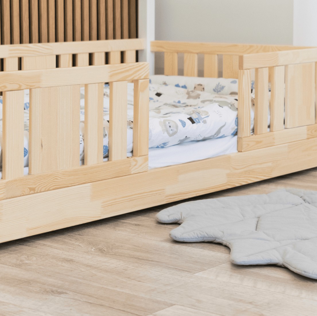 Model NIKO S bol navrhnutý s ohľadom na najmenšie deti. Jeho výška 0 cm znamená, že rám spočíva priamo na podlahe, čím sa minimalizuje riziko pádu a dieťaťu poskytuje úplný pocit stability. Toto je perfektná posteľ pre rodičov, ktorí chcú spojiť filozofiu Montessori s estetikou a kvalitným remeselným spracovaním.