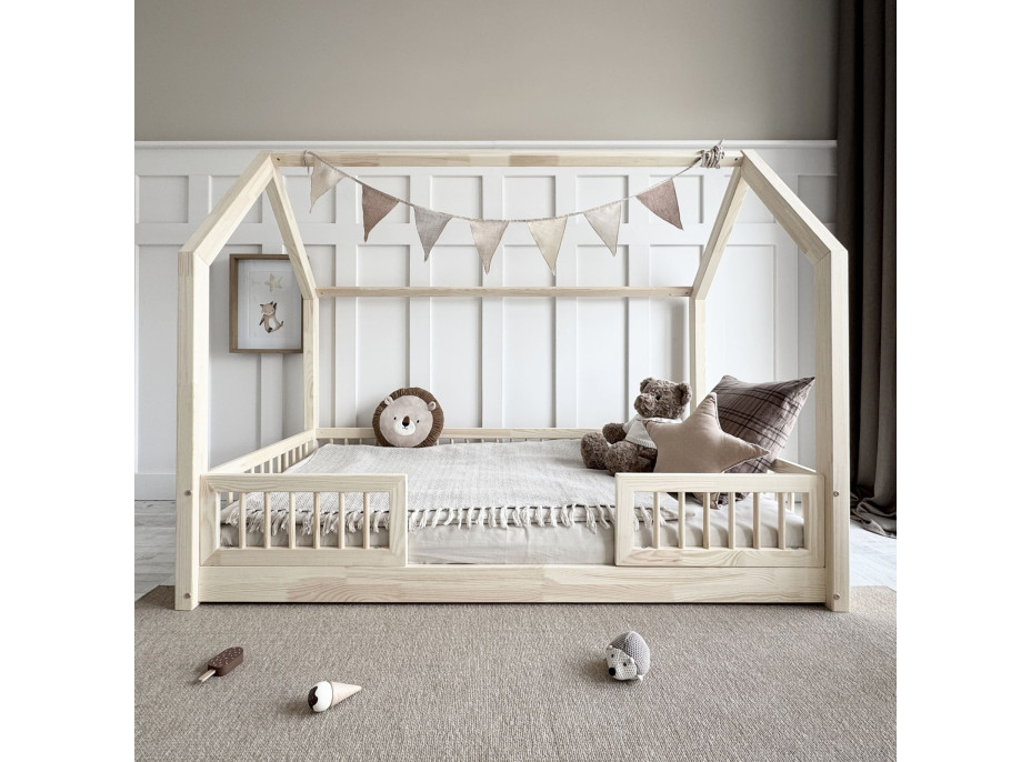 Detská domčeková Montessori posteľ z masívu borovice PIOLI DUO - 200x90 cm