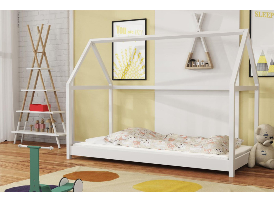 Detská domčeková Montessori posteľ z masívu borovice VERONIKA - 200x90 cm - BIELA