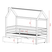 Detská domčeková posteľ so šuplíkmi LILIE - 200x90 cm - prírodná borovica