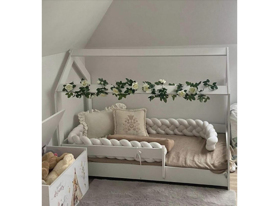 Detská domčeková posteľ LITTLE HOUSE patrí medzi obľúbené vzory postelí v tvare domčeka. Vďaka svojej neutrálnej farbe sa hodí do chlapčenských aj dievčenských izieb. Rám postele je vyrobený z MDF dosiek a drevotrieskových dosiek o sile 16 mm, vďaka čomu je posteľ pevná a stabilná. O bezpečnosť detí počas spánku sa postará ochranná bariérka, ktorú je možné namontovať na pravú aj ľavú stranu. Posteľ je dodávaná vrátane flexibilného lamelového roštu uchyteného systémom click-clack, čím je uľahčená jeho montáž. Posteľ má tiež praktický šuplík na kolieskach na uloženie lôžkovín.