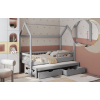 Detská domčeková posteľ z masívu borovice ASHER II so šuplíkmi a prístelkou - 180x80 cm - šedá