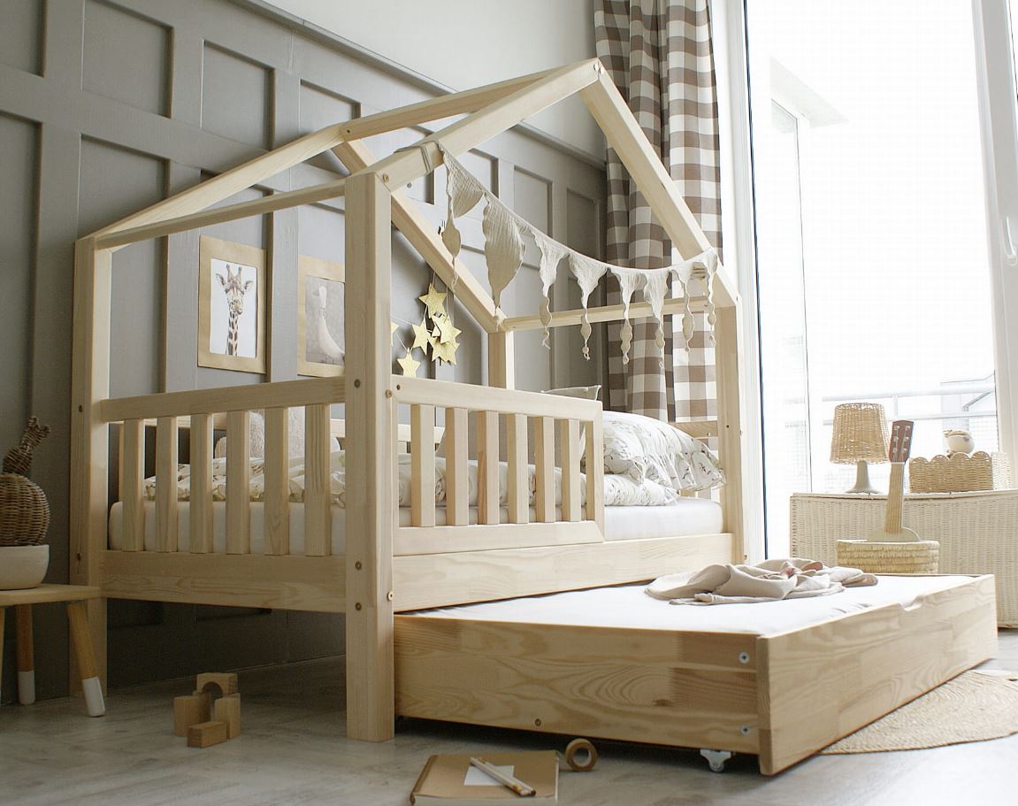 Detská domčeková posteľ z masívu borovice Bedhouse FENCE (so šuplíkom/s prístelkou) - 160x80 cm