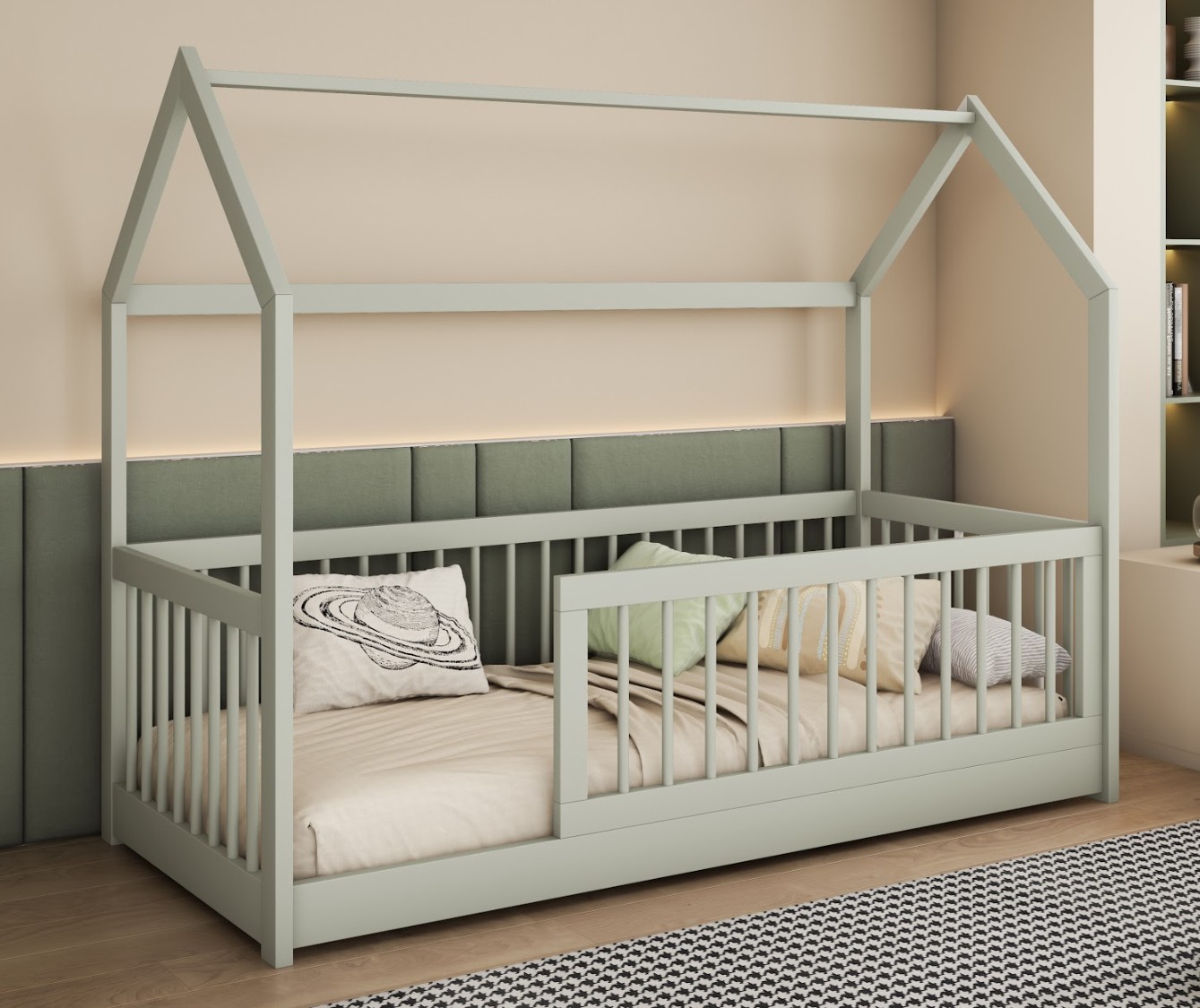Detská domčeková posteľ z masívu borovice GRÉTA - 140x70 cm - olivovo zelená