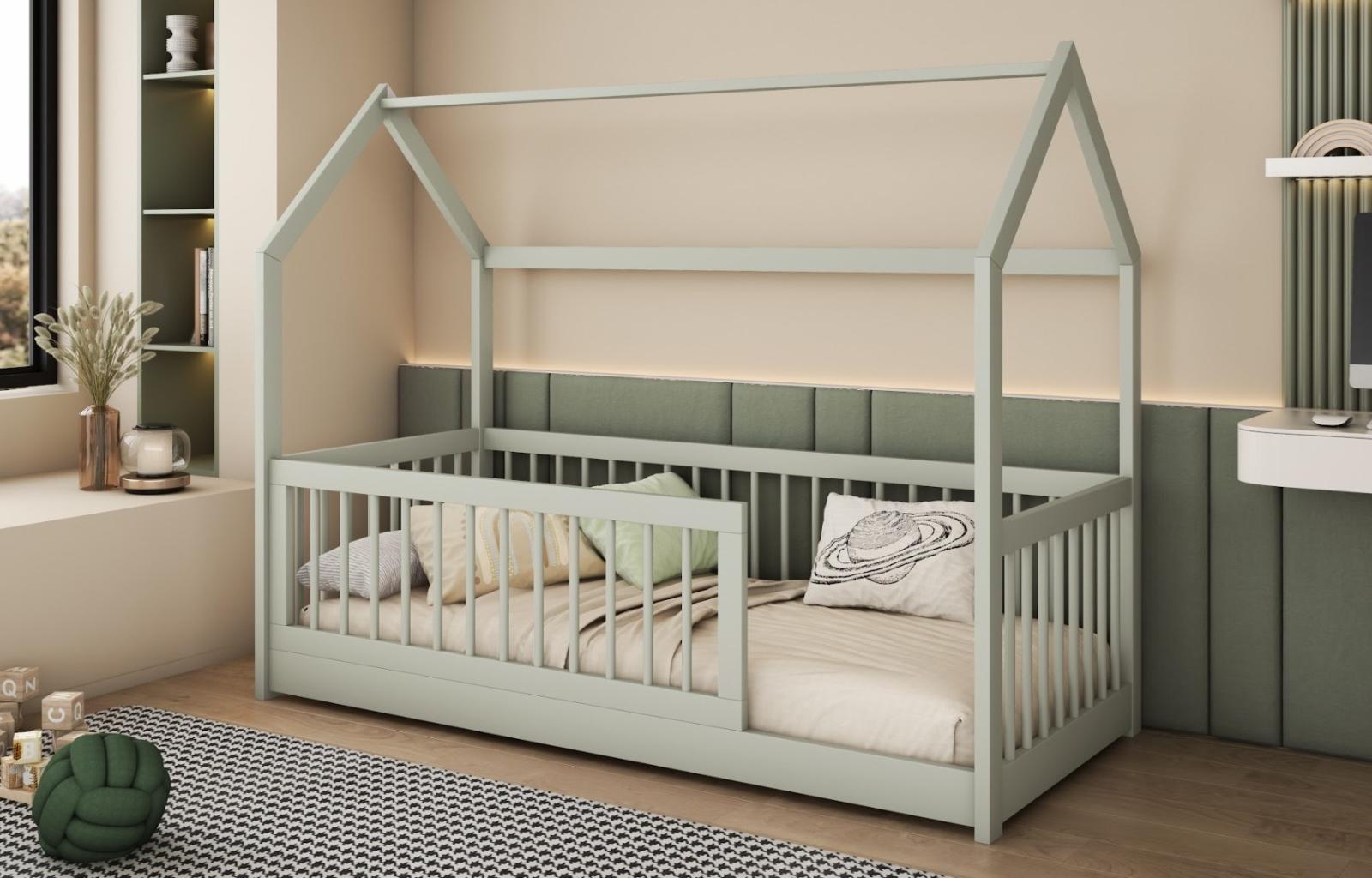 Detská domčeková posteľ z masívu borovice GRÉTA - 180x80 cm - olivovo zelená