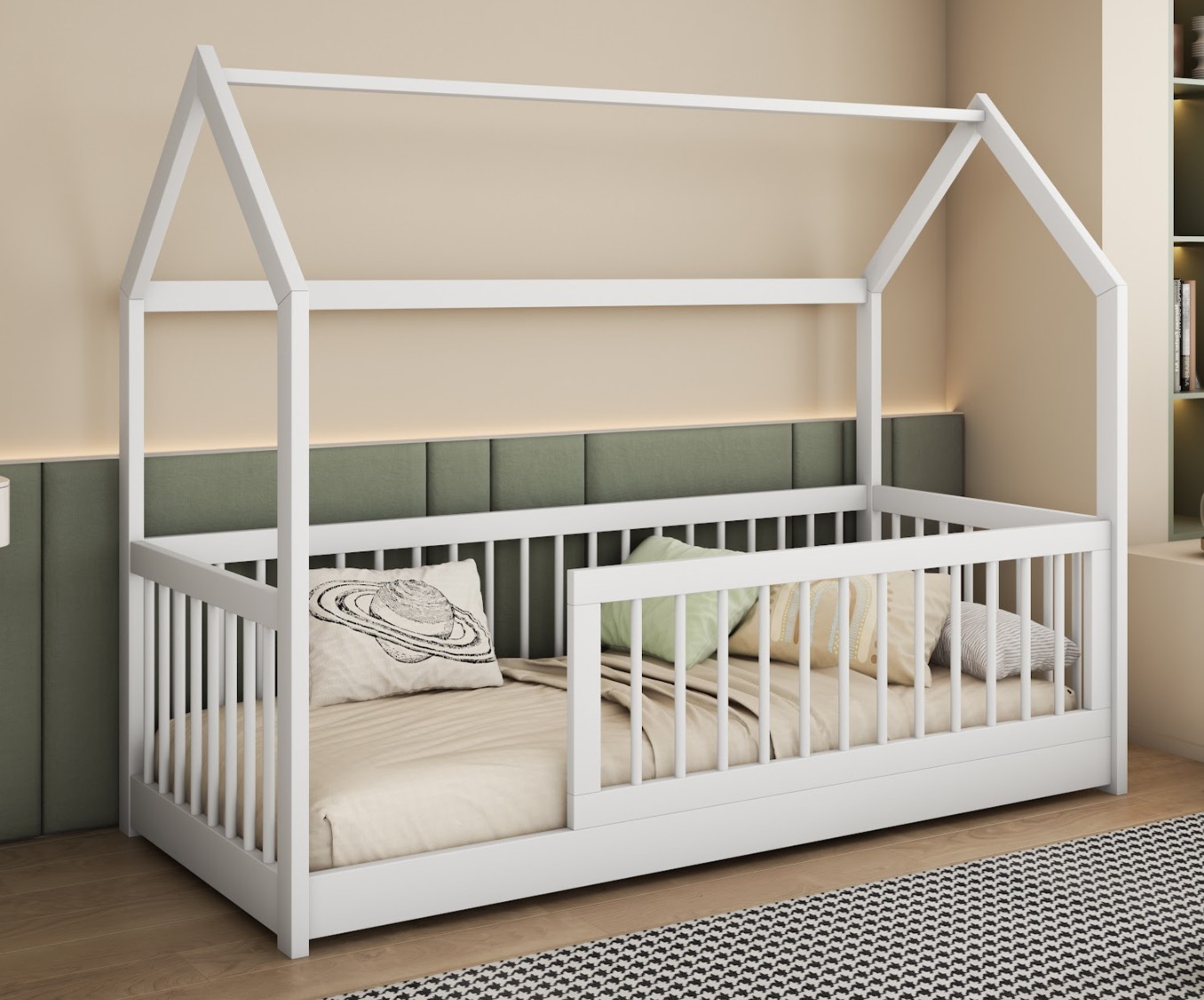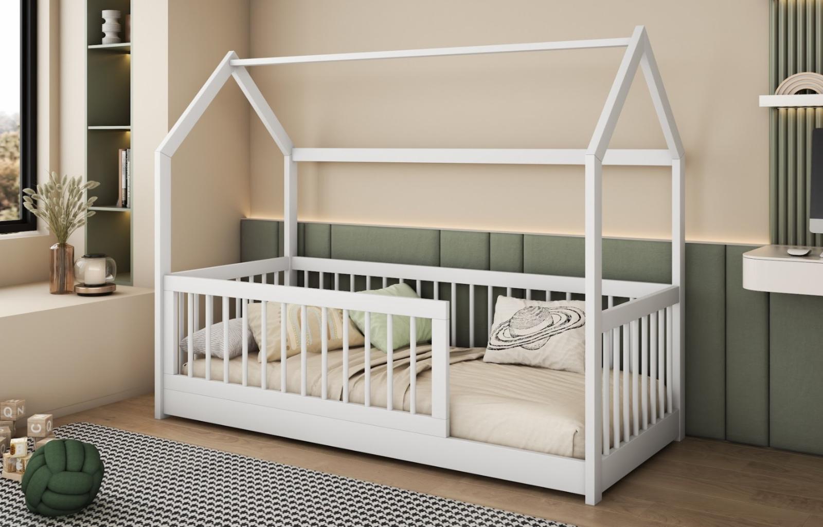 Detská domčeková posteľ z masívu borovice GRÉTA je skvelou voľbou, ak hľadáte kvalitnú a robustnú posteľ , ktorá je zároveň krásna a stane sa ozdobou detskej izby. Posteľ sa vyznačuje svojou praktickosťou a atraktívnym dizajnom. Vďaka nízkej konštrukcii a voľnému vstupu ju radíme medzi Montessori nábytok. Princíp Montessori kladie dôraz na voľnosť dieťaťa, čo táto posteľ ponúka. Dieťa má do postele voľný prístup a vďaka tomu, že je posteľ nízka a chránená bočnicami, je aj pre dieťa bezpečná. Posteľ je vyrobená z veľmi kvalitného borovicového dreva , ktoré je ošetrené tromi vrstvami ekologického laku. Tým je zaistená vysoká odolnosť postele voči mechanickému poškodeniu a rôznym druhom nečistôt. Bezpečnosť detí zaisťujú vysoké bočnice po obvode postele a ochranná bariérka , vďaka čomu sa nemusíte obávať nechcených pádov počas spánku. Bariéra je navyše odnímateľná a je možné ju nainštalovať na pravú aj ľavú stranu postele. Posteľ je navyše nízka a je preto vhodná aj pre najmenšie deti.