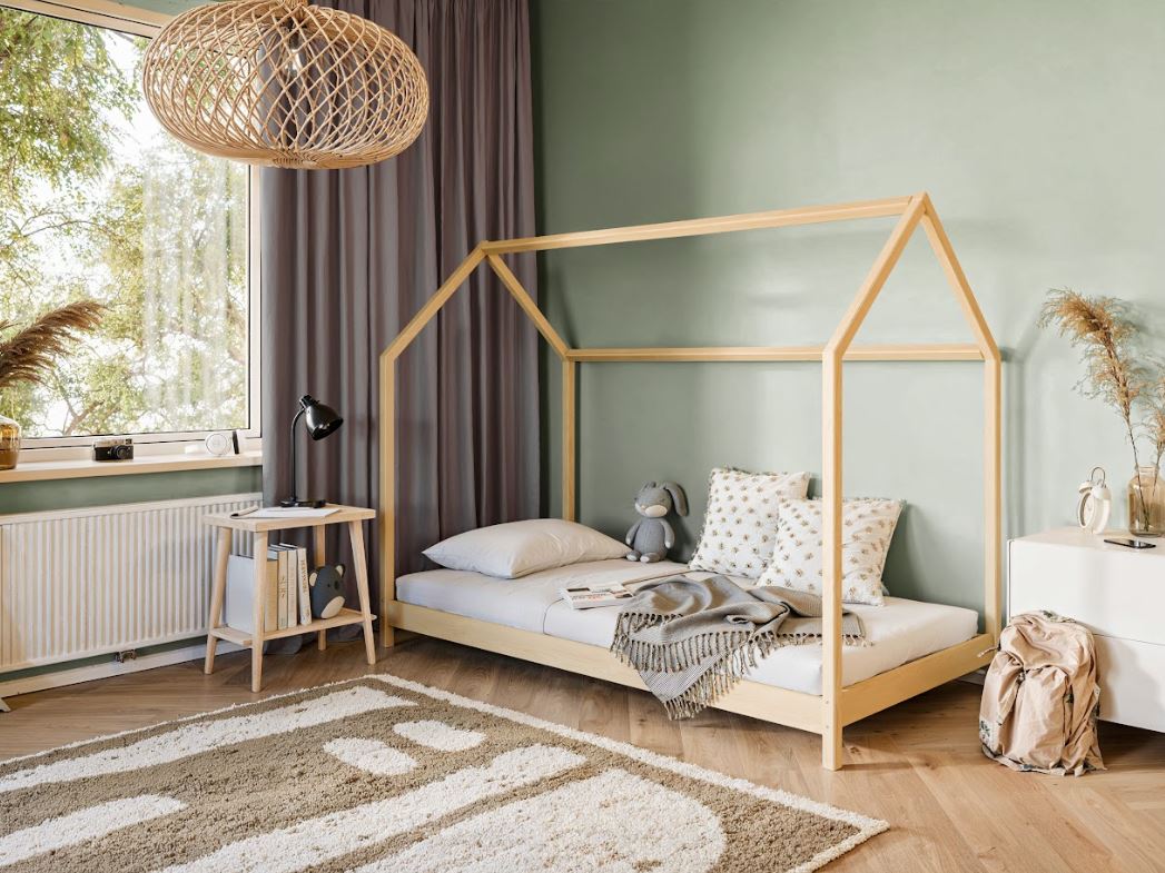 Detská posteľ LUCIE v tvare domčeka je mimoriadnym miestom, kde sa stávajú sny realitou. Jej očarujúce design a útulný charakter robia zo spánku skutočné dobrodružstvo. Pre deti je to viac než len posteľ - je to kúzelné útočisko, kde môžu spriadať rozprávky, rozvíjať fantáziu a budovať spomienky na celý život. Detská posteľ LUCIE je starostlivo vyrobená s robustnou konštrukciou a dôkladným spracovaním v každom detaile. Na výrobu sa využíva borovicové drevo najvyššej kvality ,. Posteľ je odolná proti poškriabaniu vďaka trom vrstvám ekologického laku, ktorý je bez zápachu a vyniká vysokou svetlostálosťou.