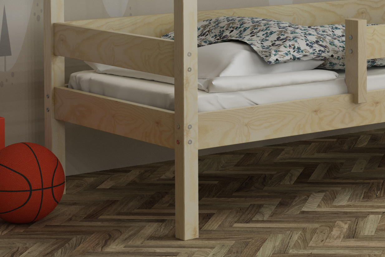 - posteľ je vyrobená z masívneho borovicového dreva