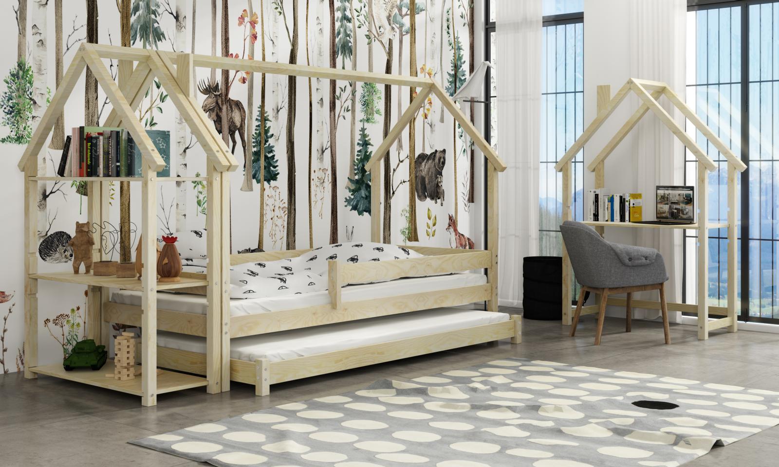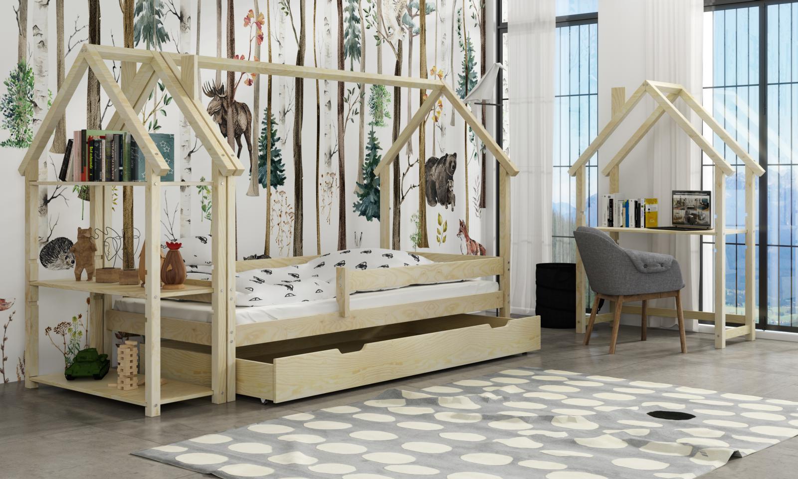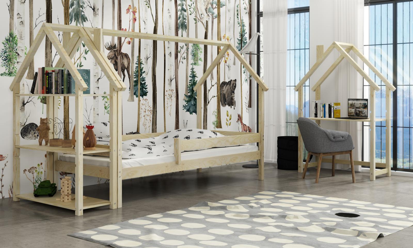 Detskú posteľ LUCKY HOUSE môžete doplniť o ďalšie produkty z našej ponuky - domčekový písací stôl alebo domčekový úložný regál.