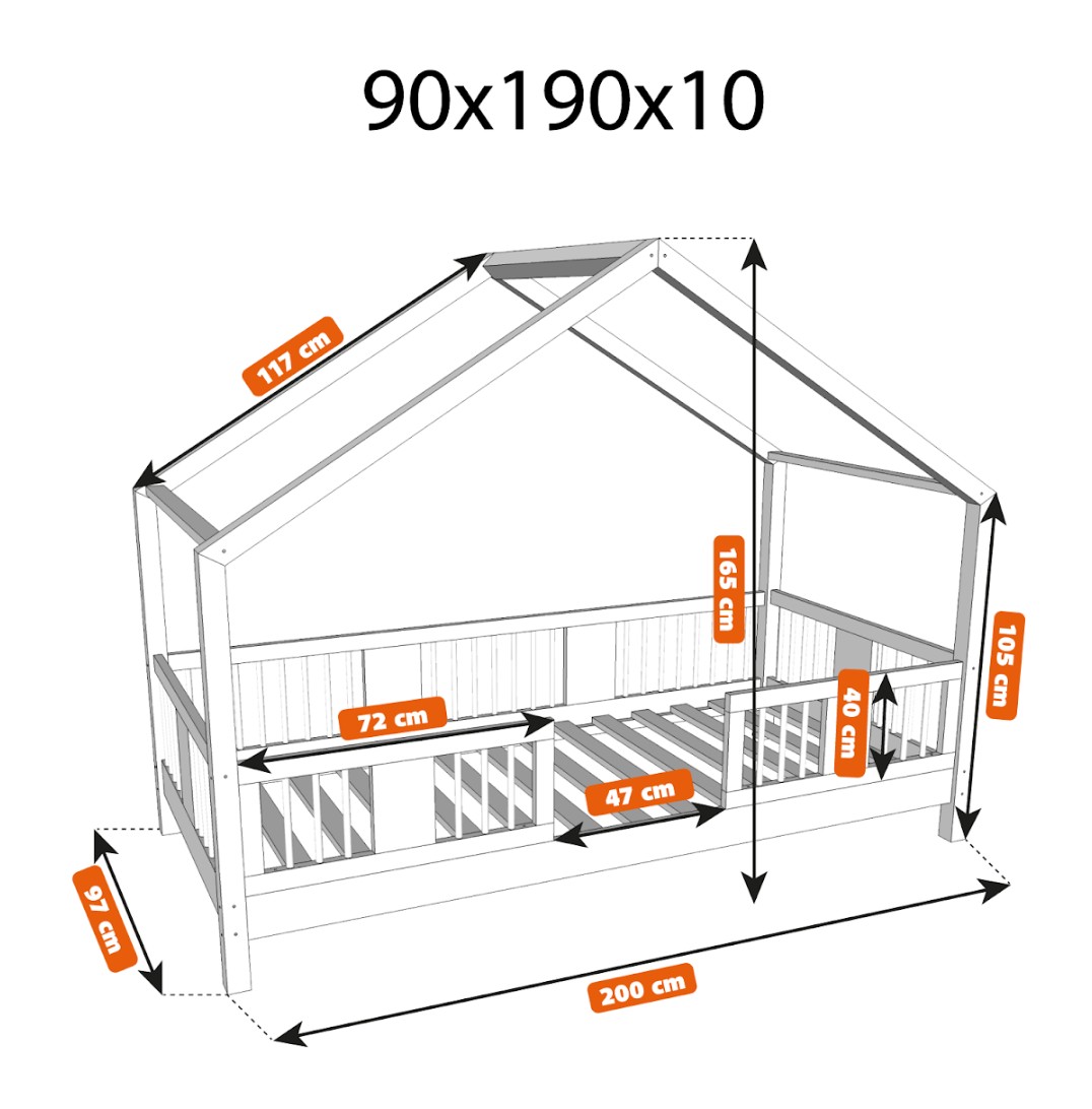 Detská domčeková posteľ z masívu borovice LUNA S 10 - 190x90 cm