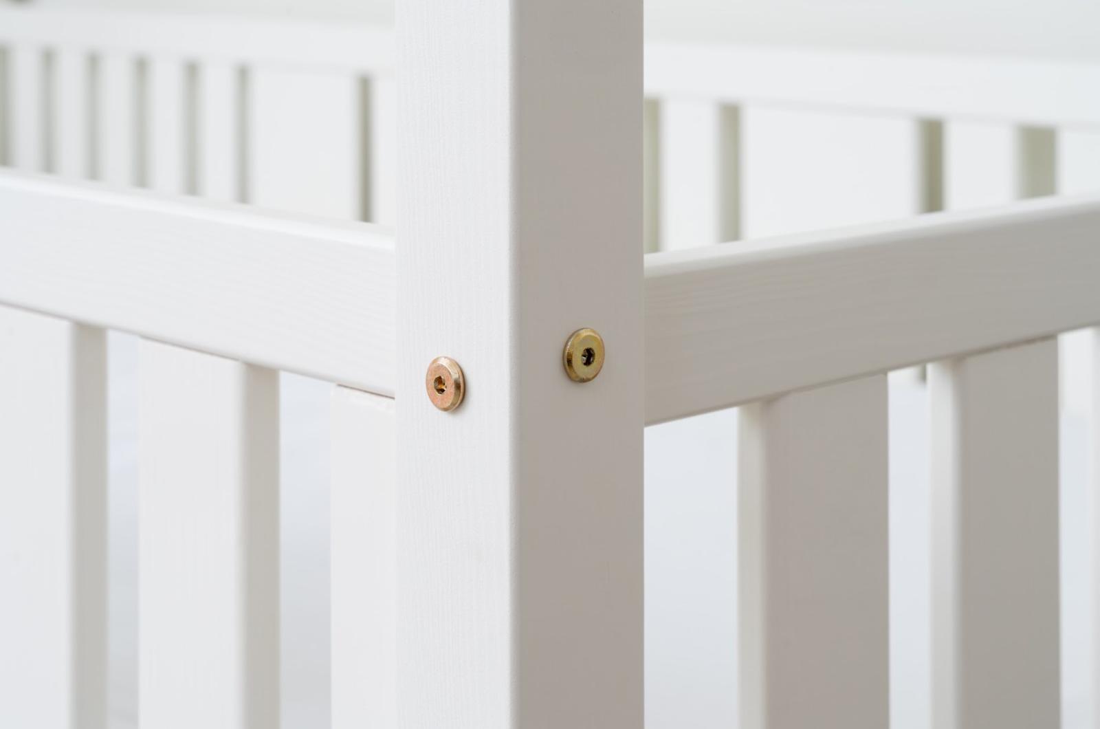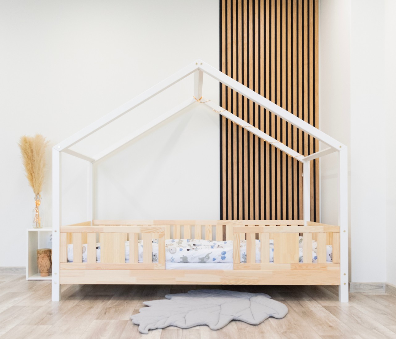 NIKO S 10 je funkčná a štýlová jednolôžková posteľ v tvare domčeka, ktorá spája kúzlo detstva s každodenným pohodlím. Rám z prírodného borovicového dreva je osadený 10 cm vysokými nohami, čo poskytuje perfektnú rovnováhu medzi bezpečnosťou a praktickosťou. Mierne zvýšený rám uľahčuje udržovanie čistoty pod posteľou a zlepšuje cirkuláciu vzduchu okolo matraca, pričom zostáva dostatočne nízky, aby vaše dieťa mohlo bezpečne vliezť a vyliezť z postele samostatne. Táto detská posteľ s nebesami podnecuje fantáziu a premieňa každodenný spánok na dobrodružstvo. Drevené nebesá vo verzii SHORT vytvárajú mimoriadne útulnú atmosféru – je možné ich ozdobiť svetielkami, girlandami alebo látkou a vytvoriť tak rozprávkový priestor na hranie, čítanie a relaxáciu. Domčeková posteľ NIKO S 10 je model navrhnutý s ohľadom na najmladších užívateľov. Jeho nízka a stabilná konštrukcia zvyšuje bezpečnosť, zatiaľ čo výška 10 cm umožňuje rodičom ľahšie udržiavať detskú izbu čistú a upratanú. Prírodné borovicové drevo o sile 2,2 cm dodáva nábytku odolnosť, stabilitu a teplý, príjemný vzhľad, ktorý dokonale dopĺňa detský interiér. Každý prvok bol starostlivo brúsený a všetky hrany sú jemne zaoblené, čím sa minimalizuje riziko zranenia pri každodennom hraní. Celý kus je natretý ekologickými farbami na vodnej báze, ktoré spĺňajú európsku normu EN 71-3. Farby sú bez zápachu, netoxické a bezpečné aj pre najmenšie deti a alergikov. Posteľ ponúkame aj vo verzii bez povrchových úprav - nelakované drevo. Vďaka tomu sa dá ľahko prispôsobiť - jej vzhľad môžete upraviť morením, lakovaním alebo maľovaním podľa vlastného uváženia.