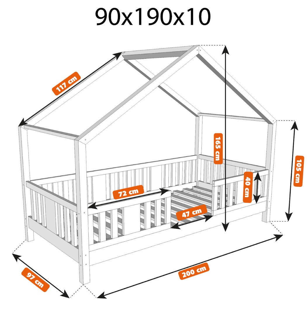 Detská domčeková posteľ z masívu borovice NIKO S 10 - 190x90 cm
