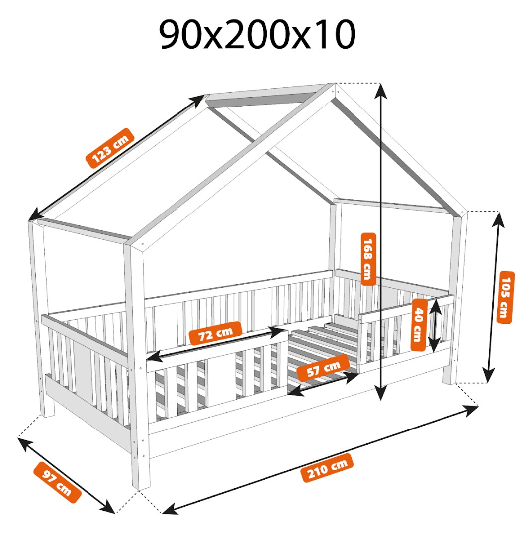 NIKO S 10 je funkčná a štýlová jednolôžková posteľ v tvare domčeka, ktorá spája kúzlo detstva s každodenným pohodlím. Rám z prírodného borovicového dreva je osadený 10 cm vysokými nohami, čo poskytuje perfektnú rovnováhu medzi bezpečnosťou a praktickosťou. Mierne zvýšený rám uľahčuje udržovanie čistoty pod posteľou a zlepšuje cirkuláciu vzduchu okolo matraca, pričom zostáva dostatočne nízky, aby vaše dieťa mohlo bezpečne vliezť a vyliezť z postele samostatne. Táto detská posteľ s nebesami podnecuje fantáziu a premieňa každodenný spánok na dobrodružstvo. Drevené nebesá vo verzii SHORT vytvárajú mimoriadne útulnú atmosféru – je možné ich ozdobiť svetielkami, girlandami alebo látkou a vytvoriť tak rozprávkový priestor na hranie, čítanie a relaxáciu. Domčeková posteľ NIKO S 10 je model navrhnutý s ohľadom na najmladších užívateľov. Jeho nízka a stabilná konštrukcia zvyšuje bezpečnosť, zatiaľ čo výška 10 cm umožňuje rodičom ľahšie udržiavať detskú izbu čistú a upratanú. Prírodné borovicové drevo o sile 2,2 cm dodáva nábytku odolnosť, stabilitu a teplý, príjemný vzhľad, ktorý dokonale dopĺňa detský interiér. Každý prvok bol starostlivo brúsený a všetky hrany sú jemne zaoblené, čím sa minimalizuje riziko zranenia pri každodennom hraní. Celý kus je natretý ekologickými farbami na vodnej báze, ktoré spĺňajú európsku normu EN 71-3. Farby sú bez zápachu, netoxické a bezpečné aj pre najmenšie deti a alergikov. Posteľ ponúkame aj vo verzii bez povrchových úprav - nelakované drevo. Vďaka tomu sa dá ľahko prispôsobiť - jej vzhľad môžete upraviť morením, lakovaním alebo maľovaním podľa vlastného uváženia.