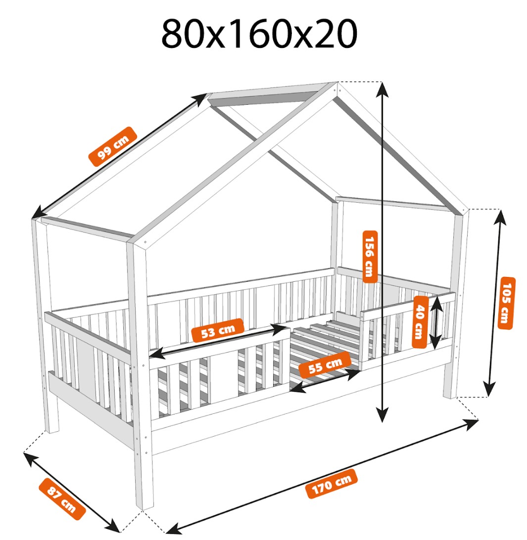 Detská domčeková posteľ z masívu borovice NIKO S 20 - 160x80 cm