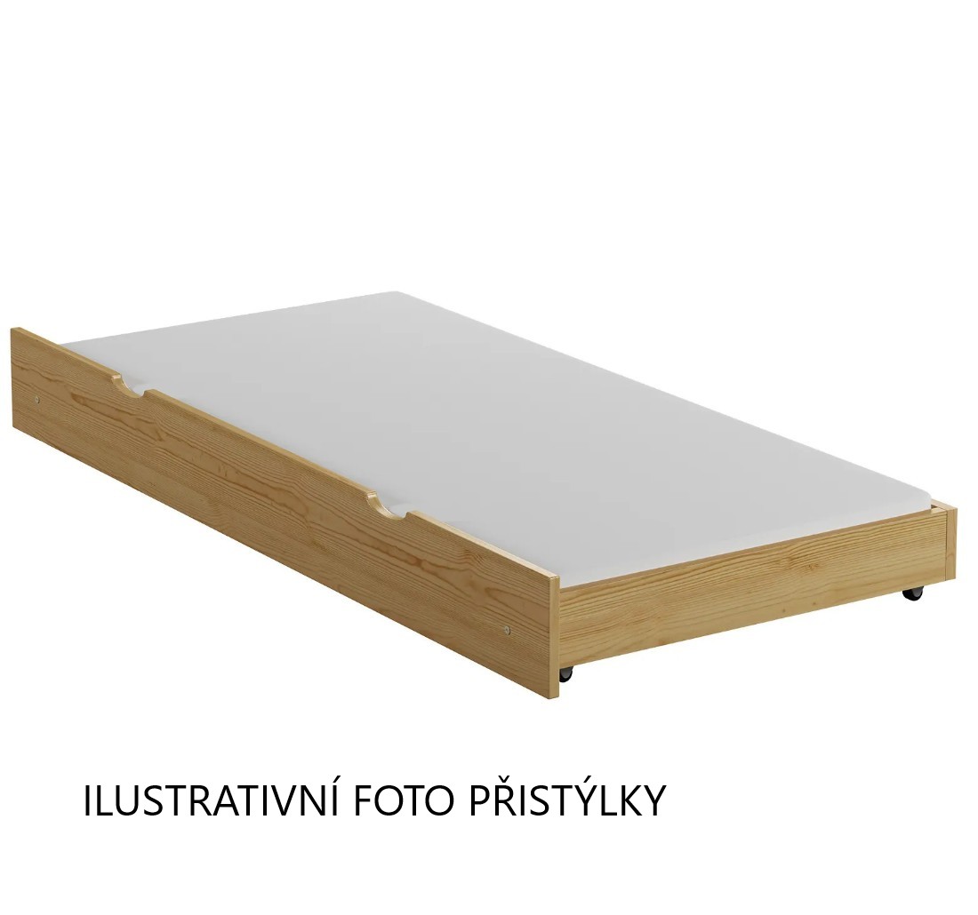Táto detská posteľ je vytvorená tak, aby ušetrila priestor v detskej izbe. K posteli je možné tiež dokúpiť praktický a priestranný šuplík z masívu v niekoľkých variantoch:
