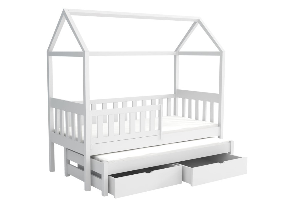 - Detská domčeková posteľ z masívu borovice REVOLUT s prístelkou a šuplíky - 200x90 cm - biela