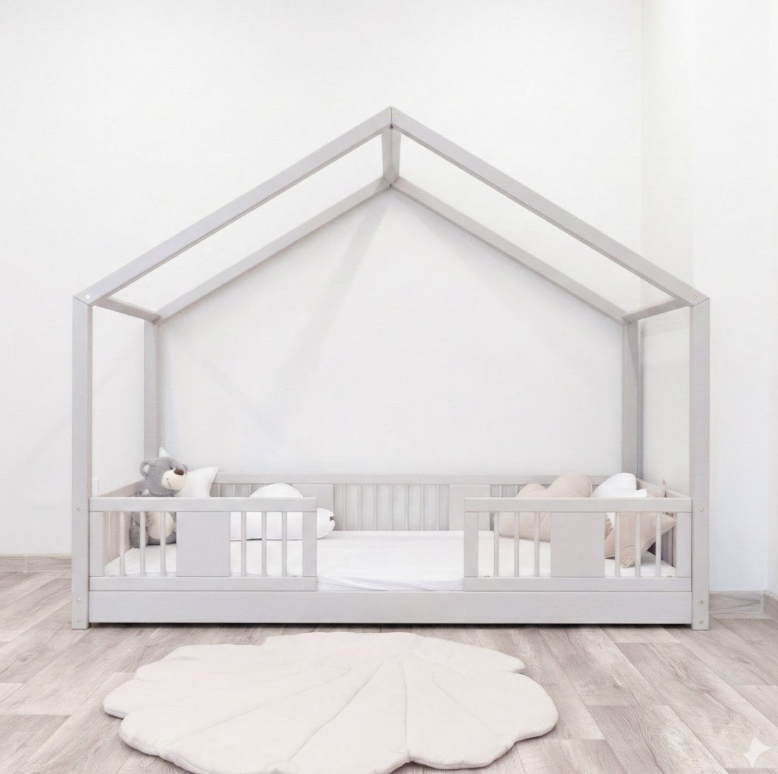 Montessori posteľ LUNA S je očarujúce jednolôžko v tvare domčeka, ktoré kombinuje funkčnosť, bezpečnosť a nadčasovú estetiku. Postavené priamo na podlahu vytvára bezpečný priestor, ideálny ako prvá detská postieľka. Vďaka nízkemu profilu môže vaše dieťa samostatne vliezť a vstávať z postele, čo podporuje jeho vývoj a nezávislosť od útleho veku. Princíp Montessori kladie dôraz na voľnosť dieťaťa, čo táto posteľ ponúka. Charakteristickým rysom modelu LUNA sú okrúhle, sústružené priečky, ktoré dodávajú posteli jemný, príjemný vzhľad a nenápadne ju odlišujú od ostatných modelov. Ich mäkký tvar vnáša do interiéru harmóniu a ľahkosť a zároveň poskytuje dodatočné bezpečie počas spánku. Posteľ LUNA S je vyrobená výhradne z prírodného borovicového dreva o sile 2,2 cm – odolného, prírodného a úplne bezpečného pre deti. Každý kus má zaoblené hrany na pohodlné používanie. Na povrchovú úpravu boli použité ekologické farby na vodnej báze, ktoré spĺňajú bezpečnostné normy. Posteľ ponúkame aj vo verzii bez povrchových úprav - nelakované drevo. Vďaka tomu sa dá ľahko prispôsobiť - jej vzhľad môžete upraviť morením, lakovaním alebo maľovaním podľa vlastného uváženia. Unikátny drevený baldachýn vytvára útulnú, rozprávkovú atmosféru. Stačí pridať svetlá alebo ľahkú látku a premeniť obyčajnú izbu na kúzelný priestor. Táto posteľ nie je len na spanie, ale aj na vytváranie spomienok.