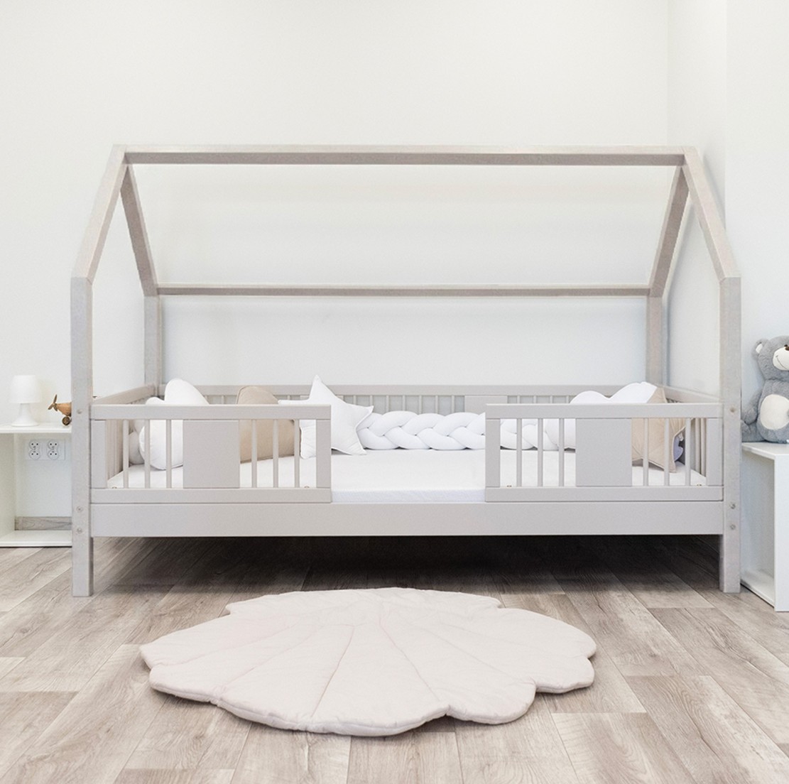 Výška nôh 20 cm otvára nové dizajnové možnosti. Pod posteľ môžete umiestniť jednu veľkú zásuvku, dve menšie alebo zásuvku s funkciou spania – ideálne riešenie pre súrodencov alebo hostí. Je to praktické miesto na uloženie posteľnej bielizne, oblečenia, diek a obľúbených hračiek, ktoré máte vždy na dosah ruky, ale mimo dohľadu. Vďaka tomu je LUNA L 20 nielen krásnym dizajnovým prvkom, ale aj funkčným kusom nábytku, ktorý pomáha udržiavať harmóniu a poriadok v detskom priestore. Celá posteľ je vyrobená z prírodného borovicového dreva, ktoré je pevné, odolné a príjemné na dotyk. Vďaka použitiu ekologických farieb na vodnej báze je posteľ pre deti úplne bezpečná a spĺňa európske normy. Dizajn inšpirovaný Montessori podporuje samostatnosť a vývoj dieťaťa a vytvára priestor, kde spánok, hra a učenie koexistujú v harmónii.
