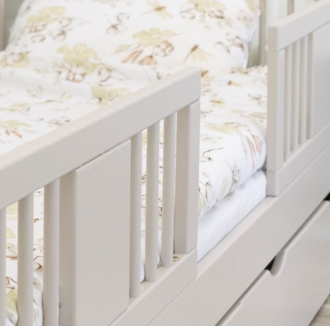 Výška nôh 20 cm otvára nové dizajnové možnosti. Pod posteľ môžete umiestniť jednu veľkú zásuvku, dve menšie alebo zásuvku s funkciou spania – ideálne riešenie pre súrodencov alebo hostí. Je to praktické miesto na uloženie posteľnej bielizne, oblečenia, diek a obľúbených hračiek, ktoré máte vždy na dosah ruky, ale mimo dohľadu. Vďaka tomu je LUNA L 20 nielen krásnym dizajnovým prvkom, ale aj funkčným kusom nábytku, ktorý pomáha udržiavať harmóniu a poriadok v detskom priestore. Celá posteľ je vyrobená z prírodného borovicového dreva, ktoré je pevné, odolné a príjemné na dotyk. Vďaka použitiu ekologických farieb na vodnej báze je posteľ pre deti úplne bezpečná a spĺňa európske normy. Dizajn inšpirovaný Montessori podporuje samostatnosť a vývoj dieťaťa a vytvára priestor, kde spánok, hra a učenie koexistujú v harmónii.