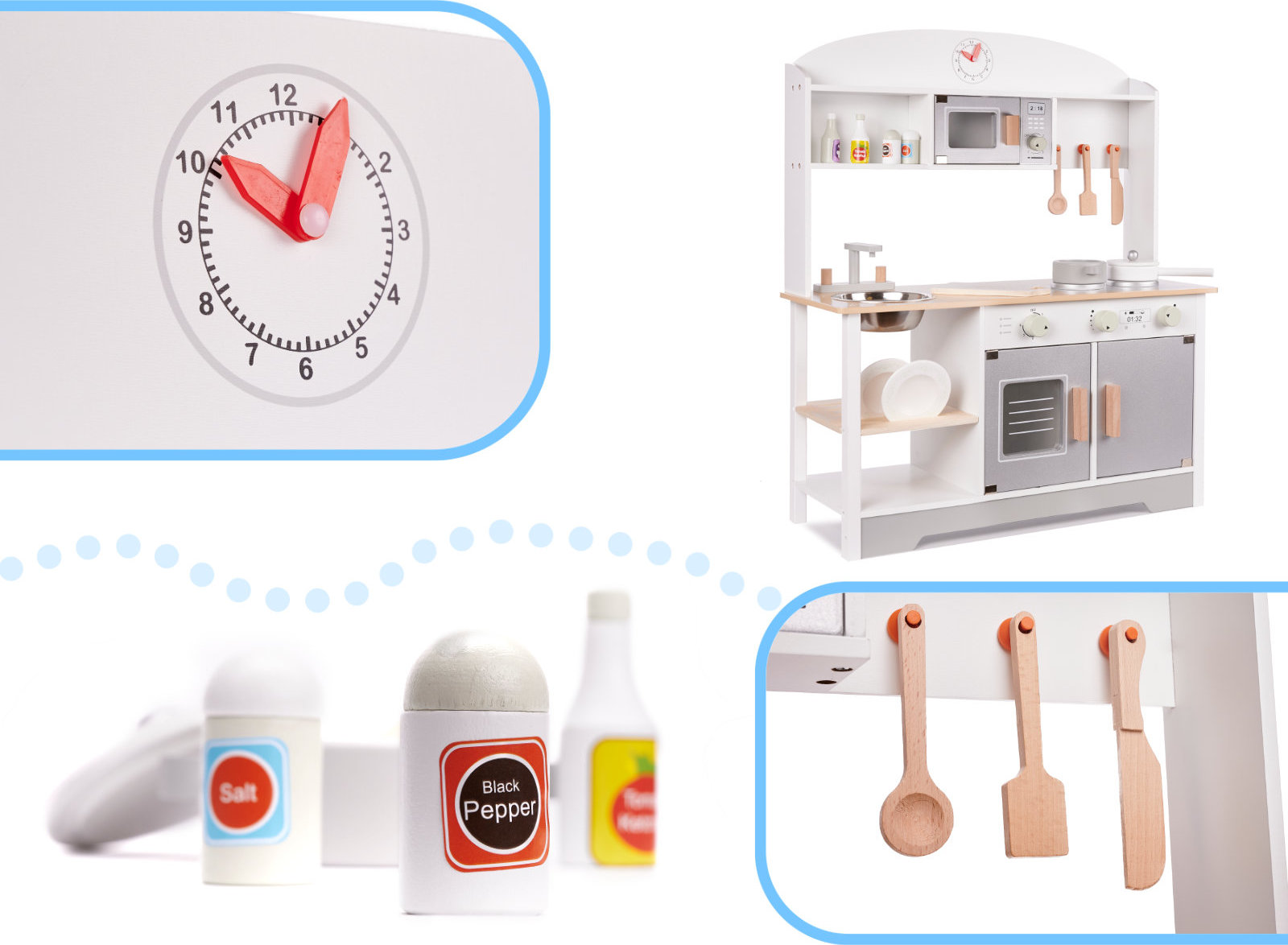 Detská drevená kuchynka MDF MODERN CLASSIC + príslušenstvo