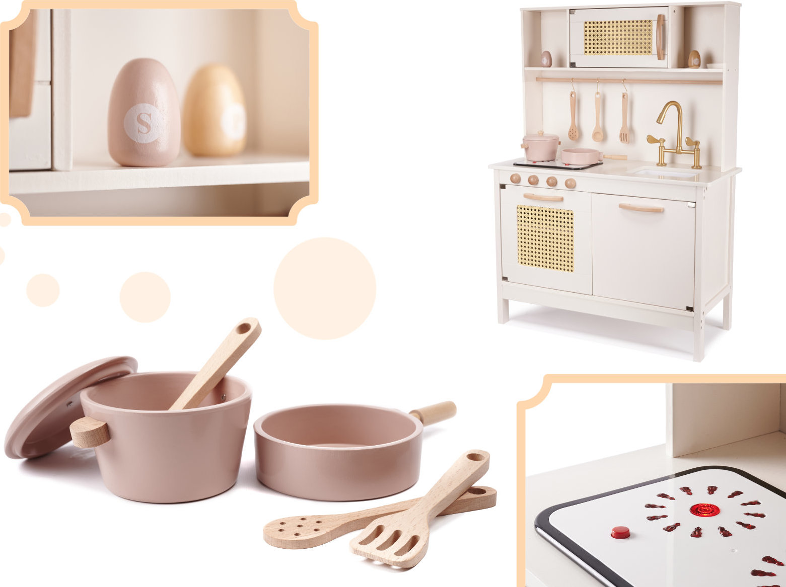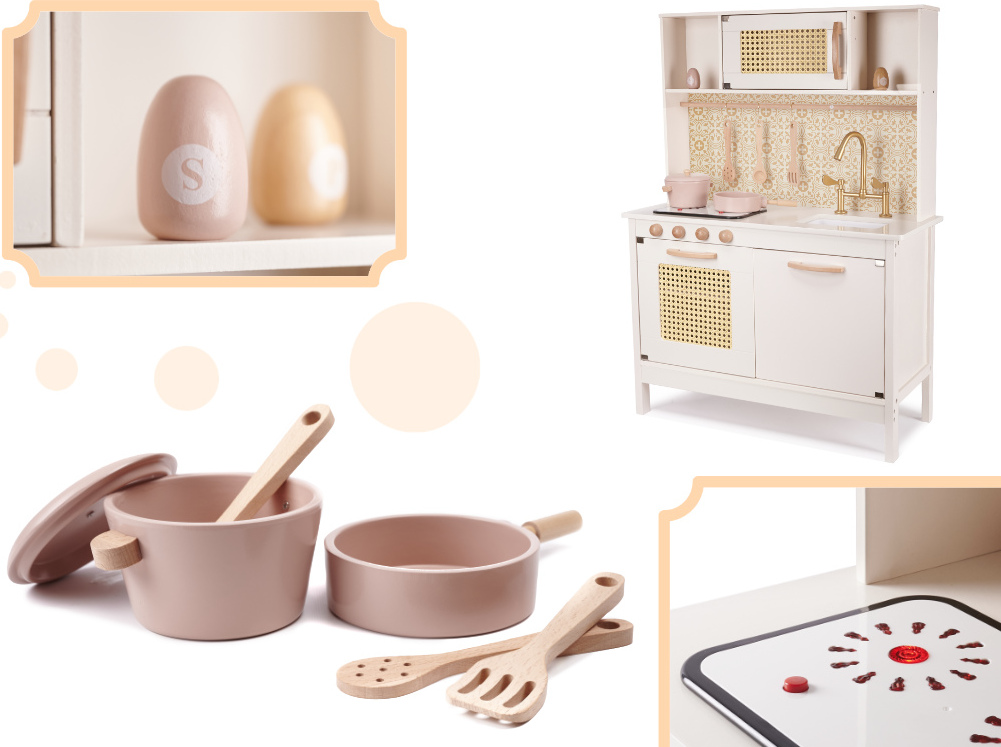 Deti rady napodobňujú dospelých pri ich každodenných činnostiach. Varenie je bezpochyby jedným z nich! Každá hostina (aj tá predstieraná) vyžaduje starostlivú prípravu. Na tento účel je neoceniteľná krásna detská kuchynka. Drevená kuchynka je splneným snom mnohých detí. Je vyrobený s veľkou starostlivosťou, poteší svojimi detailmi a praktickosťou!