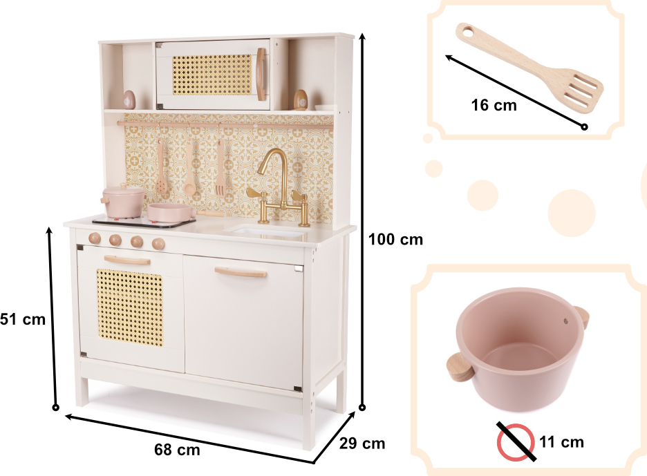 Detská drevená retro kuchynka z MDF s doplnkami BOHO