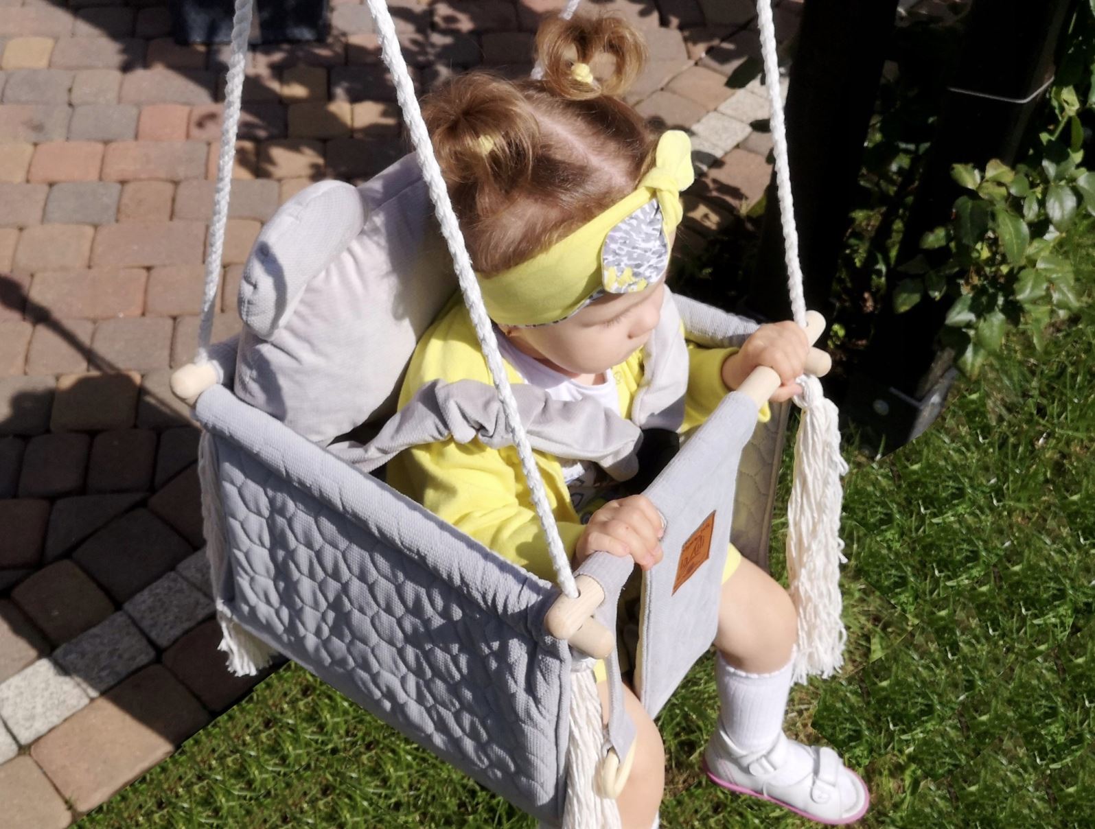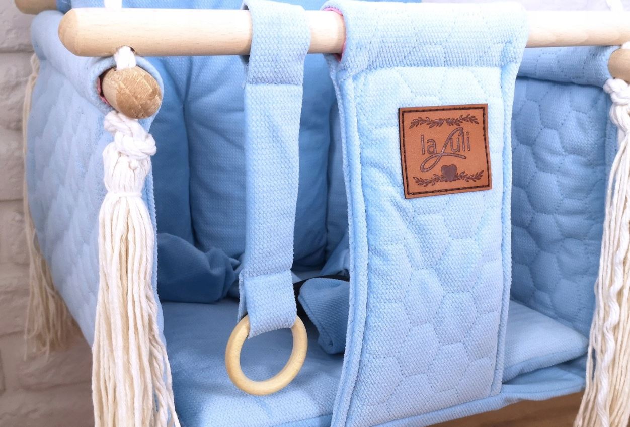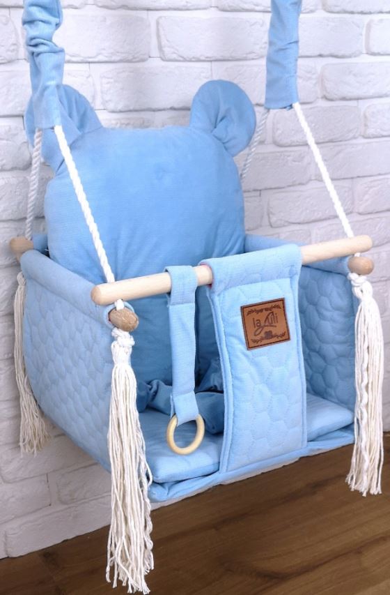 Krásna detská hojdačka z kolekcie Velvet Piko bude slúžiť ako skvelý hrací prvok detskej izby, ale stane sa aj atraktívnym doplnkom , ktorý príjemne zútulní detskú izbu. Hojdačka má krásny prešívaný vzor a jej povrch je zamatovo hebký. Svoju veľkú obľúbenosť získala vďaka praktickému a pohodlnému spracovaniu. Pri výrobe hojdačky bol dbaný vysoký dôraz na bezpečnosť detí a tak je hojdačka vybavená zosilneným sedákom, vďaka ktorému sa dno príliš neprehýba a bezpečnostným trojbodovým pásom, ktoré dieťa zaistí v sedáku. Drevená konštrukcia je vyrobená z kvalitného bukového masívu, čo mu dodáva dlhú životnosť a potrebnú pevnosť.